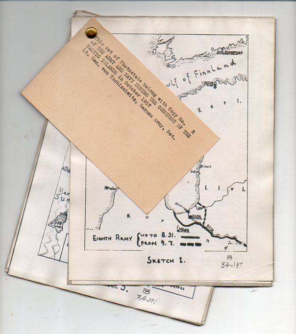 Translation by Col. H.H. Hossfeld of Lt. General von Tschischwitz, Armee und Marine bei der Eroberung der Baltischen Inseln im Oktober 1917: Erfahrungen und Betrachtungen as The Army and Navy During the Conquest of the Baltic Islands in October, 1917.