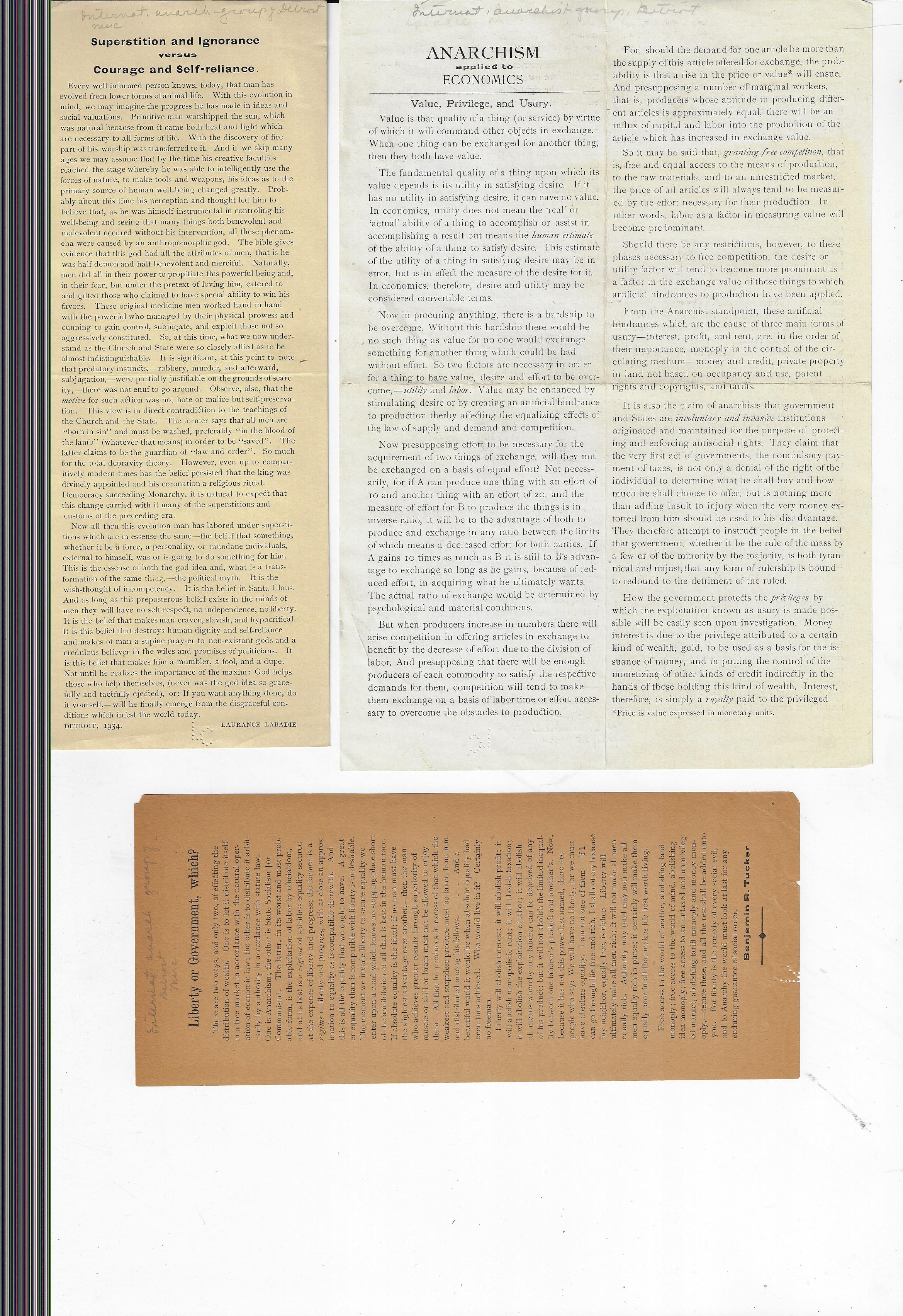 Laurance Labadie, "Anarchism Applied to Economics." International Anarchist Group