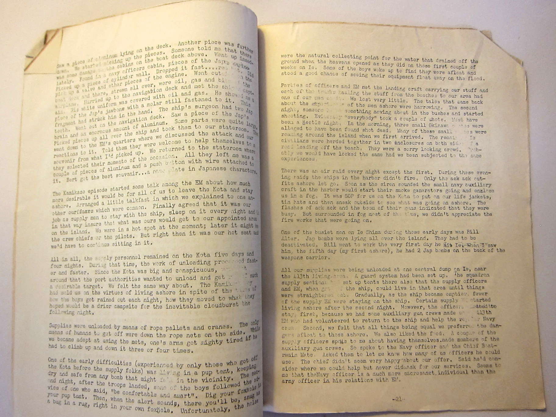 Tyler, Parker R.: From Seattle to Ie Shima with the 413th Fighter Group, a Narrative. Self-published, 1945. 30pp, 11x8 inches. Good condition. Personal recollection of Capt Parker Tyler, jr.: mimeographed, typewritten, and gathered by staples. $250 Only one copy located (US Air Force Academy) in WorldCat.
