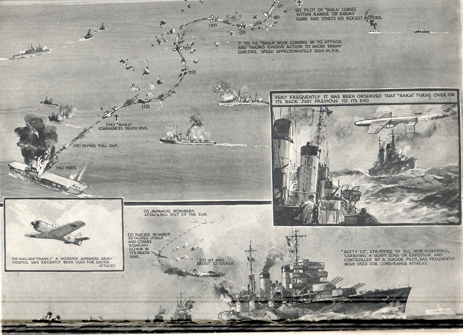 My favorite mid-century illustrator–G.H. Davis of the Illustrated London News–has provided yet another remarkably clear and well-designed series of images on a difficult topic for a main-line popular audience. This time (appearing as a two-page spread on 28 July 1945 in the ILN) showed the structure, strategy and deployment of one of the late war’s
