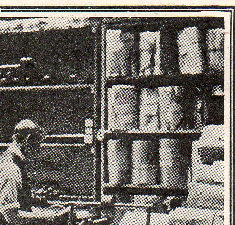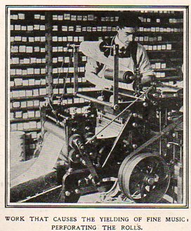 There is a certain layered, geological dystopic quality to the images of these men laboring at producing piano rolls for player pianos (and found in The Illustrated London News for 18 December 1909). This is true especially for the details, the small boxes in the background to where the rolls are being "processed"--music pounded out with metal points on a hard surface, as though produced by whatever it was that was in those little labeled wooden containers, far removed from the artistry of melody. These are images of a culture being made into hundreds of thousands of miles of hole-filled paper.