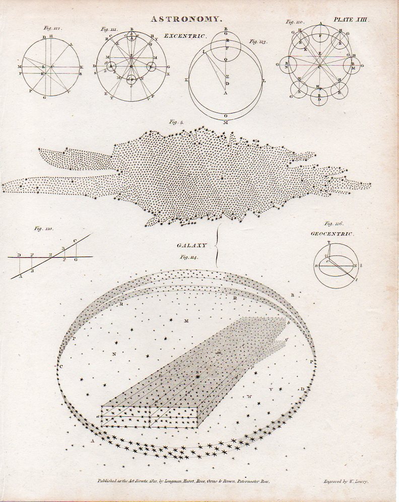 (I cannot let it pass that the central image here relates to Sir William Herschel's spectacular 1790 rendering of the Milk Way, which he was able to deduce by measuring the density of the stars to come up with a splendid representation of what the galaxy looked like. He was able to do a better job mapping the galaxy than cartographers were able to do mapping the entire coastline of Australia.)