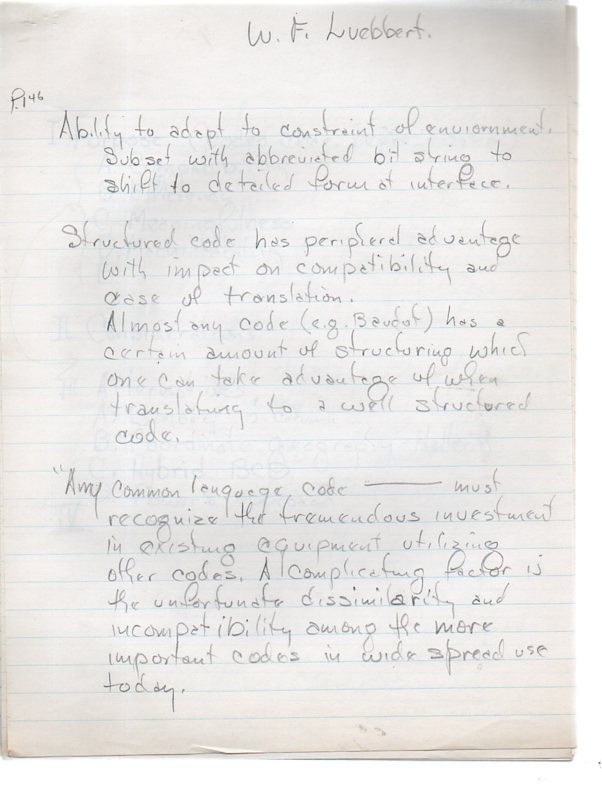 --The American Standard Code for Information Interchange (ASCII)...6pp, manuscript in pencil, loose leaf sheets. Stapled. Ca. 1963/4.
