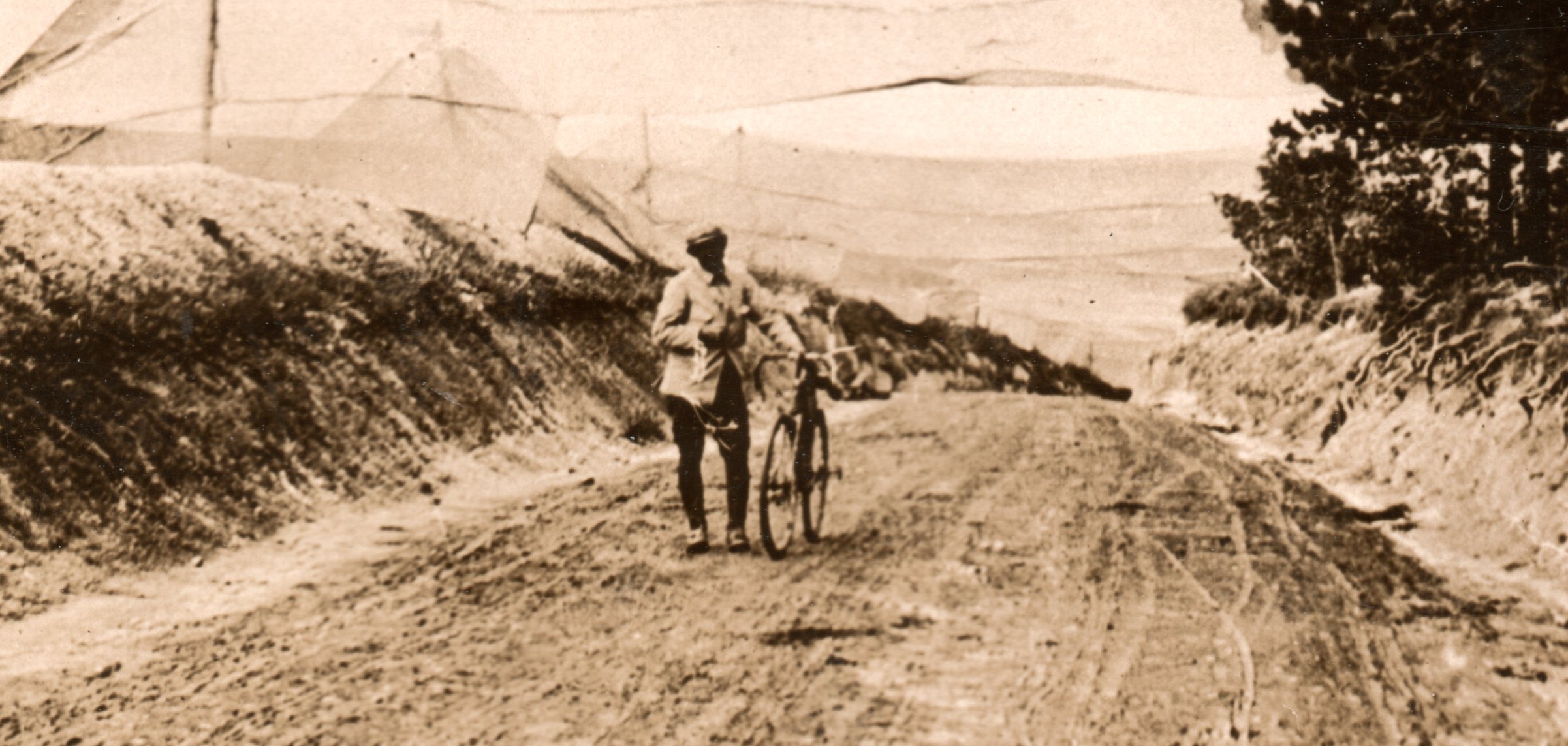 But here we are, just the same. And so the image above, with the man on a bicycle on a well-used road--he's moving along under a long canopy of netting designed to obscure/hide the road from telescopic viewing or eyes-in-the-sky. When this photo was made for the Western Newspaper Union, mid-1918, the war was nearly over. But still there was the fighting, and the supply lines for the millions of troops, right to the bitter end at the 11th hour of the 11th day of the 11th month.