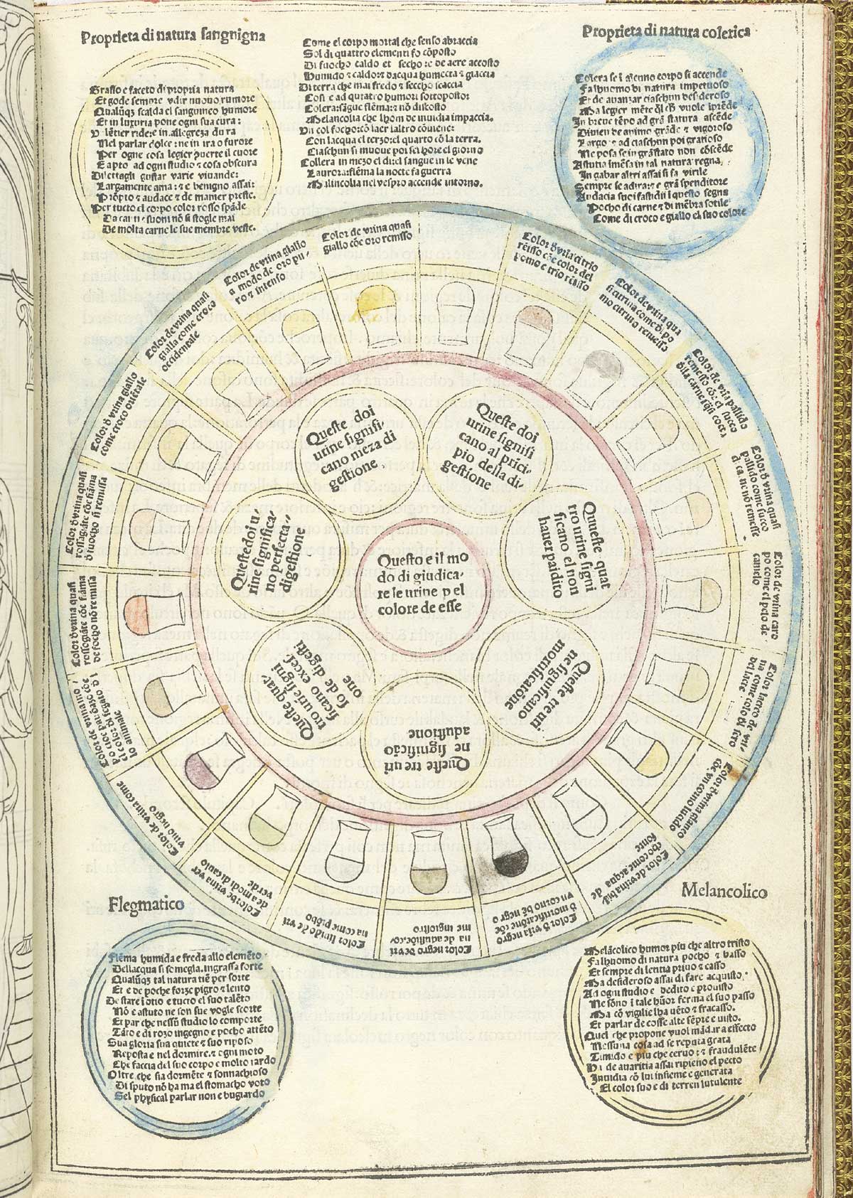 Johannes de Kehtam's Fasciculus Medicine (printed in Venice in 1500) was the first anatomy to be printed with illustrations. Ketham was described as a German doctor living in Italy and may well have been Johann von Kerchheim, a German practicing surgery and medicine in Venice during he 1470'), and who wrote a series of tracts on various aspects of medicine which were then collected into this single bound volume. The illustrations are spectacular and to me have a very modern sensibility in their mid-Renaissance woodcut legacy--the look very clear and concise, are well proportioned, nicely labeled, and give plenty of free rein to open and blank spaces on the woodblock. The only time these images really "fail" is when they appear in color--a process that would've been undertaken privately, by the purchaser of the book, who would have contracted with an artisan to color the book. The images in almost all of the cases of coloring that I have seen just do not match the elegance and brilliance of the original with no color.