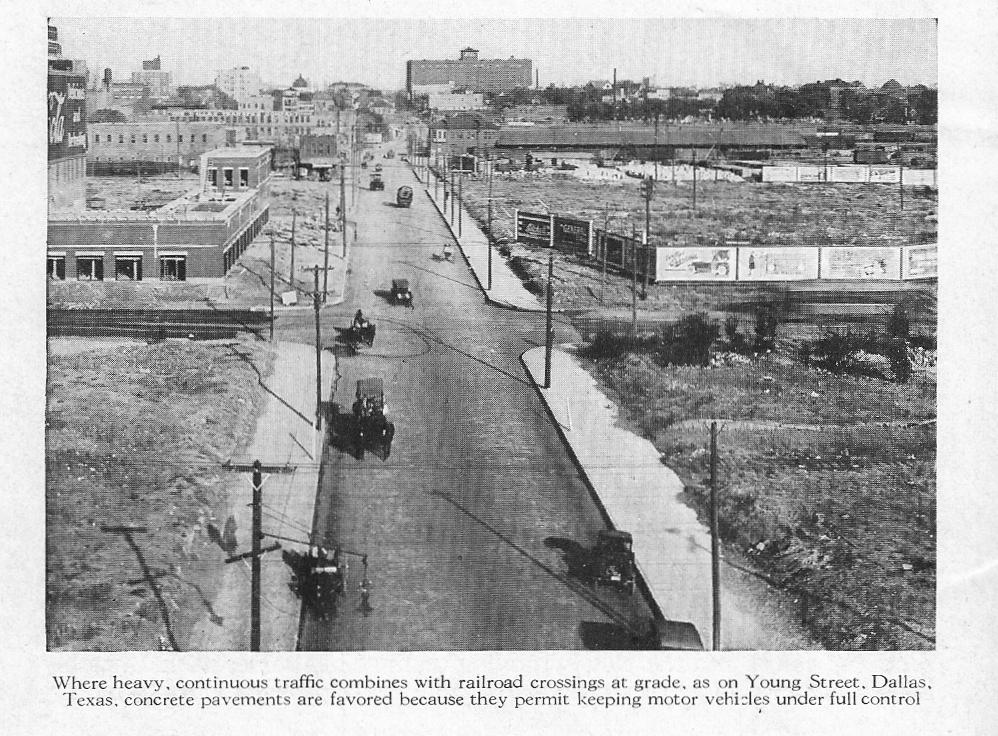 Concrete Streets for Your Town, Concrete for Permanence is a substantial sales vehicle for using concrete to modernize U.S. towns and cities and is not surprisingly produced and distributed by the Portland Cement Association. There is no date of publication, but the the feel of the pamphlet plus the images of the vehicles and the dress of the few people represented in the many photos of concrete-improved streets place this around 1922 or so. In any event, I was attracted to this pamphlet by the images, not the least of which is the cover, which so (in its no-doubt enhanced whiteness) the newly concretized street grid for Pipestone, Minnesota. There are a number of pictures of bringing certain small-ish cities into the future of paved non-dirt streets, brought to them by concrete. And so That said I've reproduced four images, below (please note that all of the images are expandable and actually become clearer as they get larger):