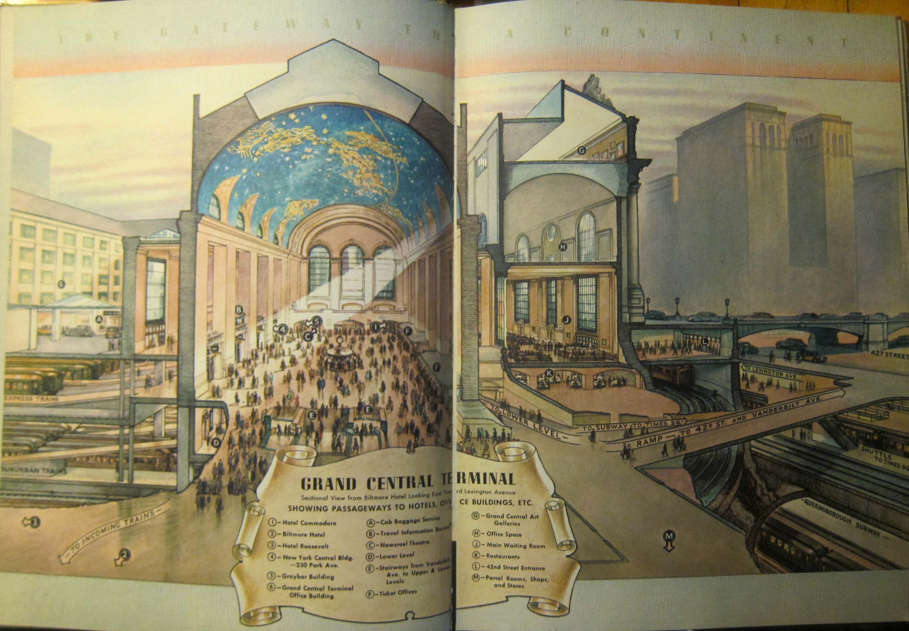 This is a very Grand-Central_terminal-centric image of NYC--and rightfully so, being one of the great buildings of Manhattan. These images come from a promotional The Gateway to a Continent, published in 1939, which is a fairly luxurious publication which I think was intended for the appreciation of possible luxury accommodations for visitors to the 1939 New York World's Fair. The result is an overview of the venues on Lexington/Park/Madison from 42nd-51st streets. There's a great two-page map that shows this section in detail and which leaves out virtually everything else save the text mentions of some like "the Chrysler Building", "the Empire State", and "Penn Station" without images of them.