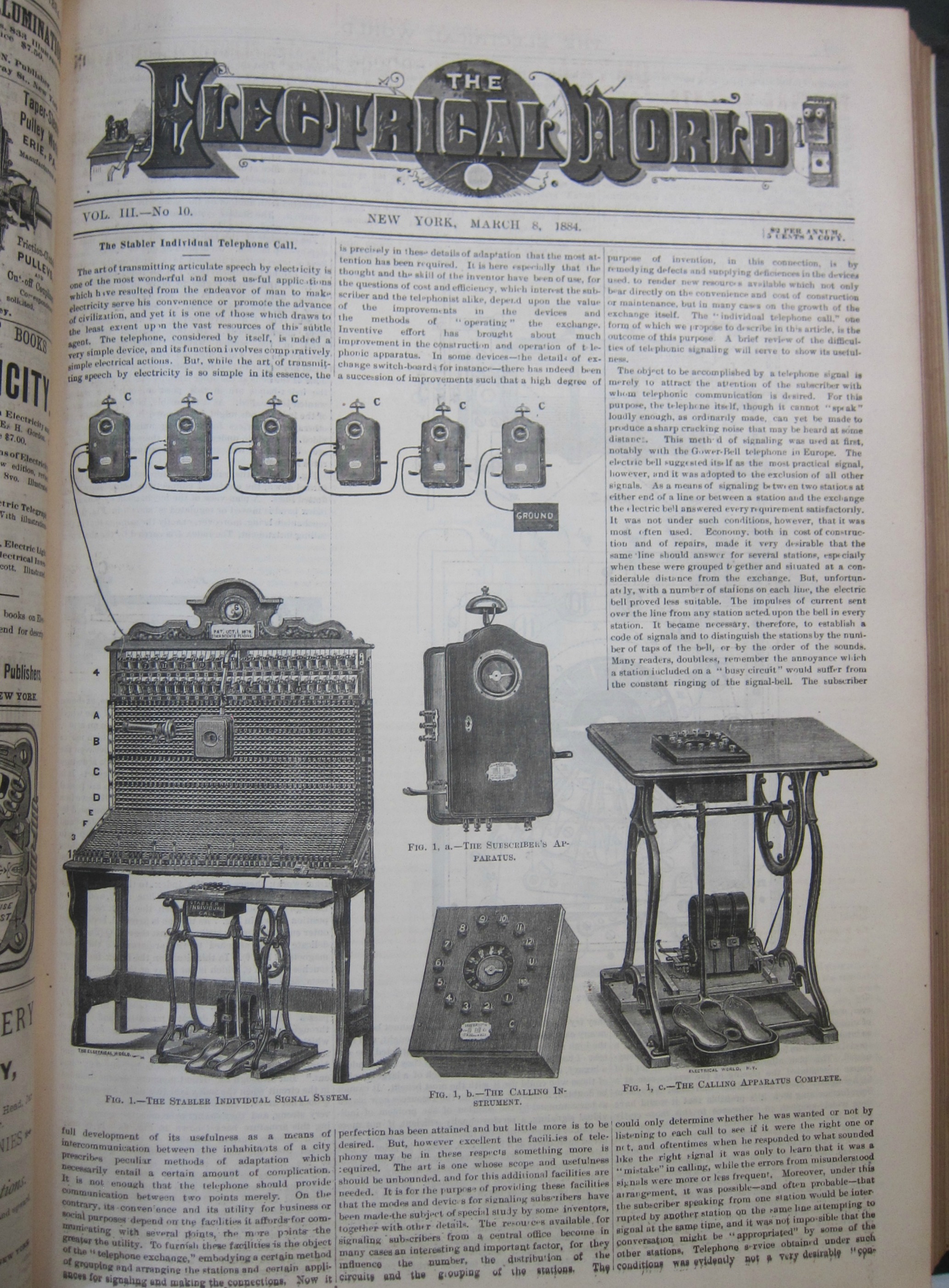 From the front page of Electrical World for March 8, 1884: