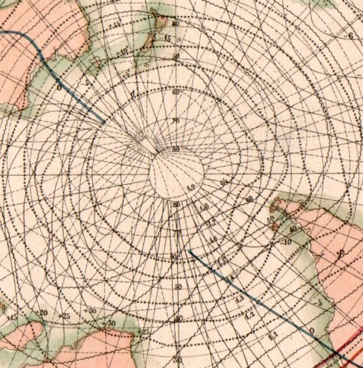 This beautiful network of lines tells the early story of weather in cartographic form. They appear on Karte der Isothermen, Isoklinen, Isogonen und Isodynamen mit der Magnetischen Meridianen, and was published in the atlas to accompany the best-selling encyclopedic presentation of the natural history knowledge of the world to that time, Baron Alexander von Humboldt's Kosmos, which was published over a period of several from 1845-1862. The map demonstrates and visualizes climatic information showing isothermes, isoclines, isogones and isodynamics, with the magnetic meridian.