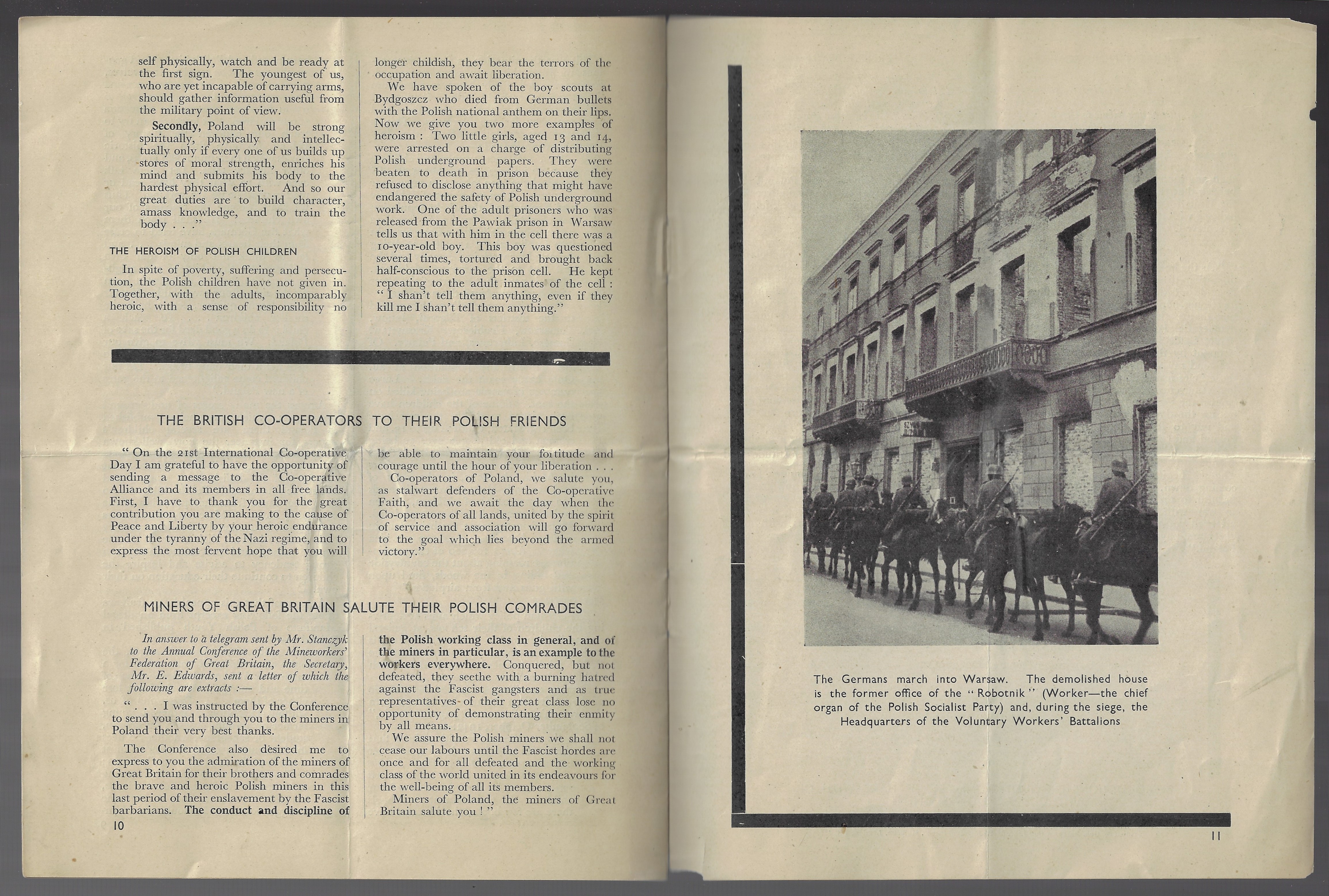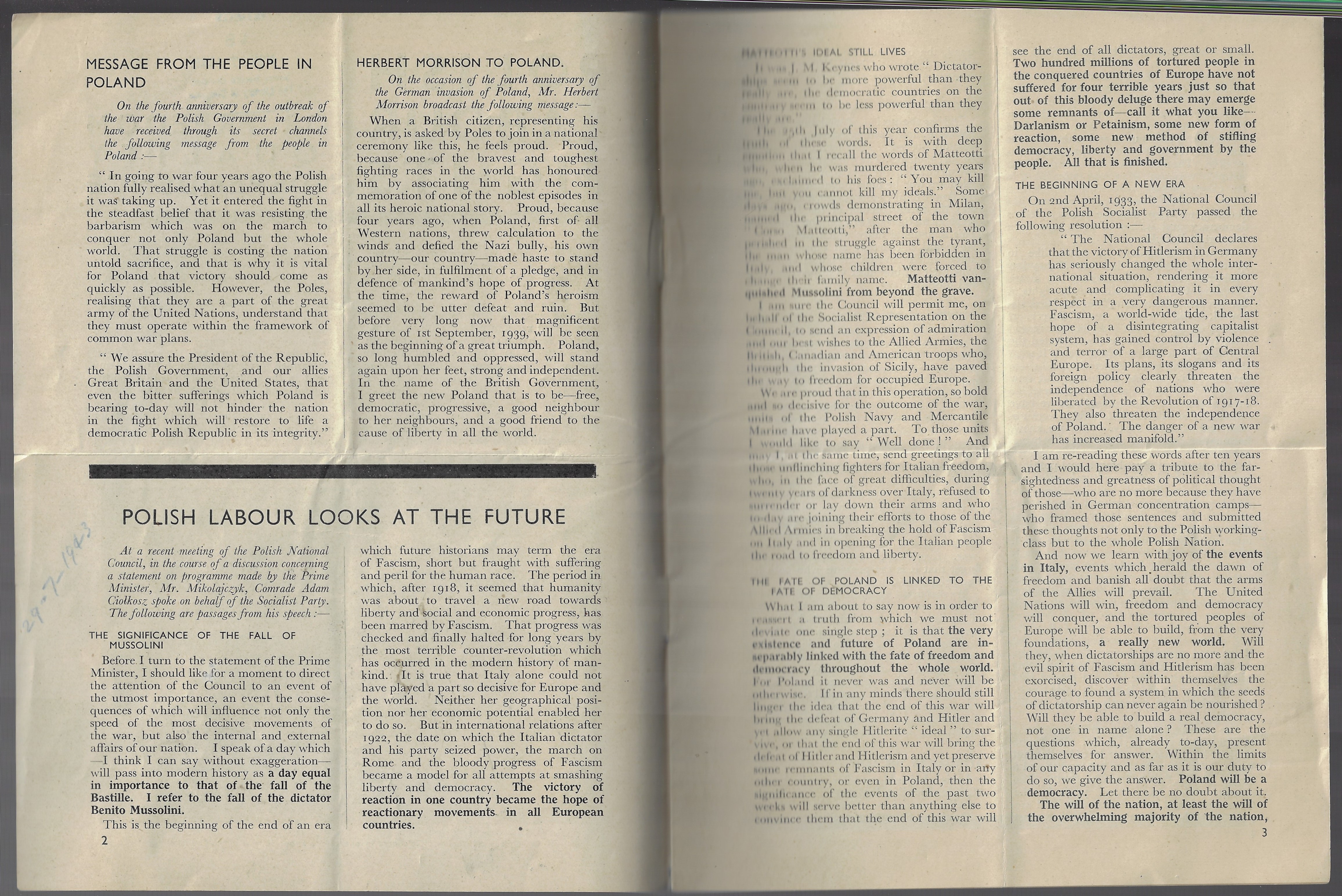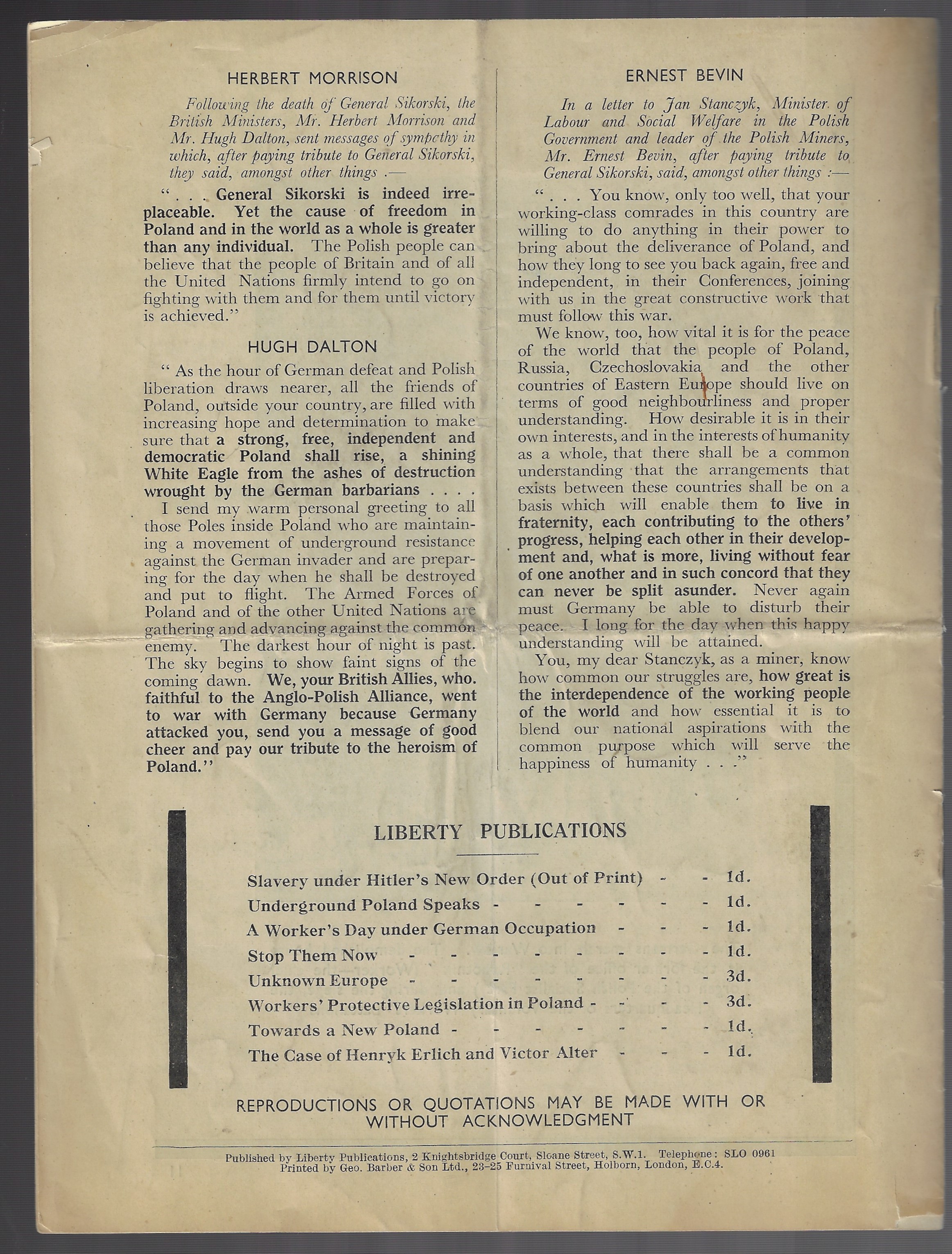 I decided to share the entire Ploish Labour Fights for Freedom, Equality, Independence because it is pretty scarce and its content is very powerful and deserves to be read. It is only 12 pages long but there is a lot in there. The pamphlet was printed in London by Liberty Publishers in 1944, though I cannot tell if it is before/during/after the Warsaw Uprising. There photo on the front cover ("Graves of Warsaw's defenders in one of the public squares...") may reference those killed in the Uprising, so it may well be printed in August at the beginning of the battle, as there is no direct reference to it in the text. By the end of the Uprising there were 10,000 of these defenders who would be killed as well as 200,000 people living in the city.