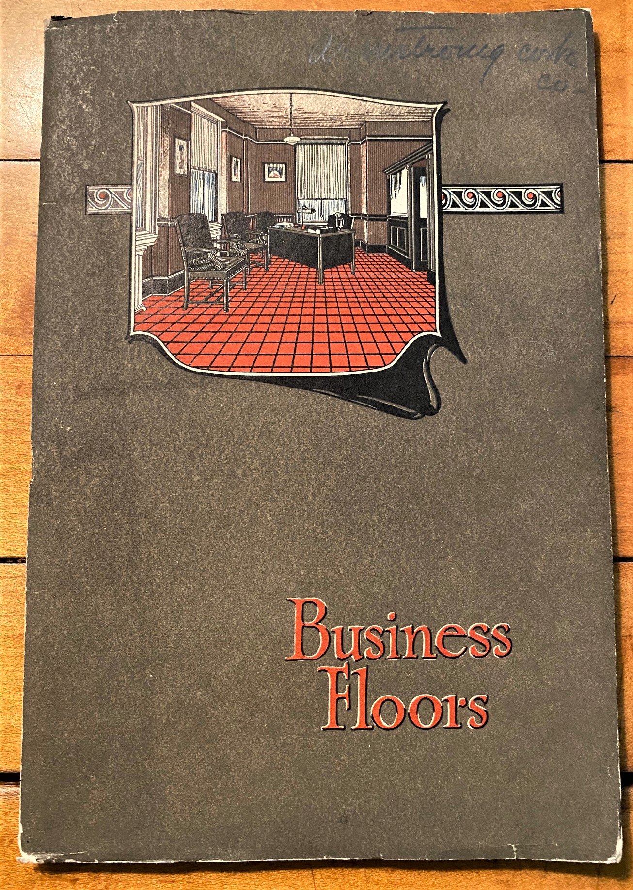 This is a pretty unassuming pamphlet, judging from outward appearances (see below)1. It is an advertising promotional published in 1924 for Armstrong Cork Company of Lancaster (PA) pushing their extensive selection of linoleum flooring. (Linoleum, by the way, was created in the 1850s and was a constant source for durable and inexpensive floor covering for about 100 years...the first linoleum factory established in the U.S. was on Staten Island, NYC, with the company settled into a town they called Linoleumville, which was later renamed "Travis". Anyway, I digress...) I'm drawing attention to the publication because of the illustrations, which are no doubt standard for the time and made to be complimentary, though they look a lot different from their intentions looking at them today--at least to me. There's a LOT of distortion in the perspective, some of it from the camera angle and some of it, well, from the highly repetitious designs in the flooring, as you can see here: