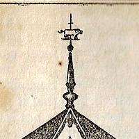 So here they are, the guy on the right is hauling the muck to an elevator shaft at right (more visible in the full version of the woodcut, following), while another fellow shovels, and a third man strands there surveying the scene with arms folded in a pose recognized world-wide at construction scenes. The little squares above them show the cross sections of one row 12"-thick lengths of cut lumber (laid on top of another layer of the same running at a right angle, making 15 layers in all) on top of which stone would be placed.