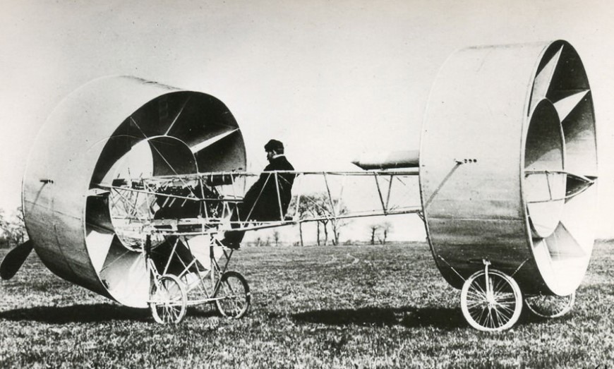 “This machine instead of having two wings like a bird, will have from four to twelve, according to the length. The forward end should be built sharp, to offer less resistance to the wind. Having more wheels than are necessary to its elevation, no danger can occur from any accident that may occur to one or two of them. The machine can be guided by some kind of rudder, or by stopping one or two of the stern wheels, which are attached to each side of the stern. At first sight, such a machine as this may appear the production of a visionary, but the same would have been said fifty years since had any man described a locomotive engine and a railway. Every step towards the construction of this machine can be based on mathematical principles The air furnishes a vast fund of power for the use of mankind, although as yet they have only used it to propel ships and wind-mills. “