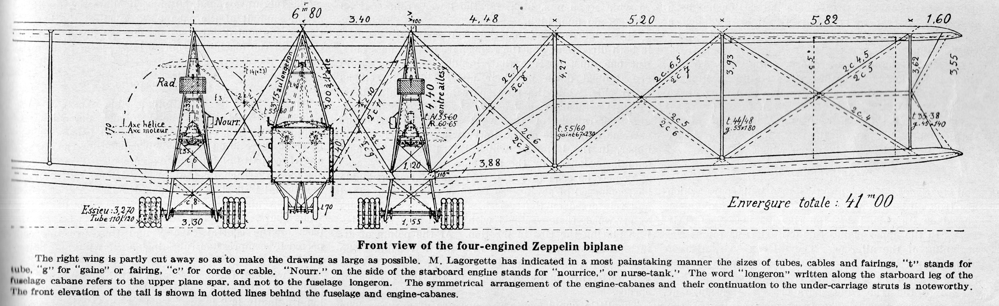 I found these schematics in the November 16, 1918 issue of Engineering, published just a few days after the eleventh hour of the eleventh day of the eleventh month. No doubt the plans were made from a downed aircraft, and I suspect it was probably not published during the war. This was about the largest plane produced during WWI, and it was a beast. In any event, I've reproduced the plans below.