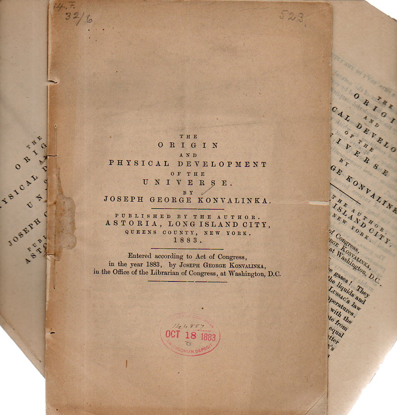 - "For ages, this mass of matter has been undergoing condensation, until at length it has become reduced into the bulk we imagine; having proceeded gradually, of course, from its atomic and imperceptible state, into what we understand of visible, palpable, or otherwise appreciable nebulosity...."--pg 85