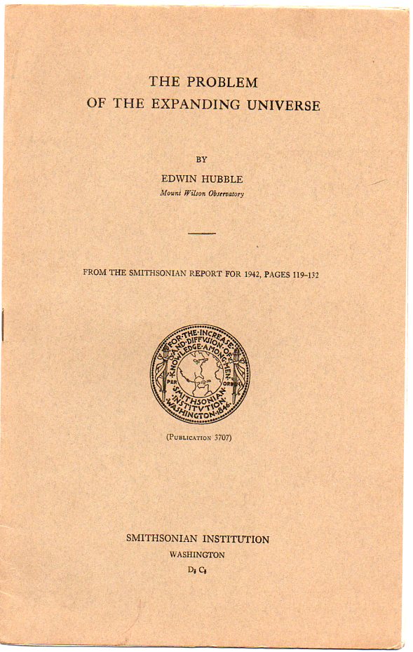 ITEM: Hubble, Edwin. The Problem of the Expanding Universe. Offprint: Smithsonian Report for 1942, pp 119-132. Original wrappers, partially unopened. Very fine condition. $250