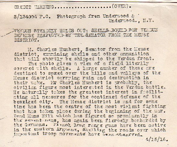 M. Humbert (1866-1927) would've had more of an interest in this scene than most, as he represented the Meuse district, and at this point int he war the shells were headed to a part of that area, Verdun. Verdun of course was one of the major battles of WWI, fought from 21 February to 18 December 1916, in the hills and dales of north-eastern France, at Verdun-sur-Meuse. There were 306,000 battlefield deaths at Verdun, plus another 500,000 wounded, in what may have been one of the most gruesome battles of modern times.