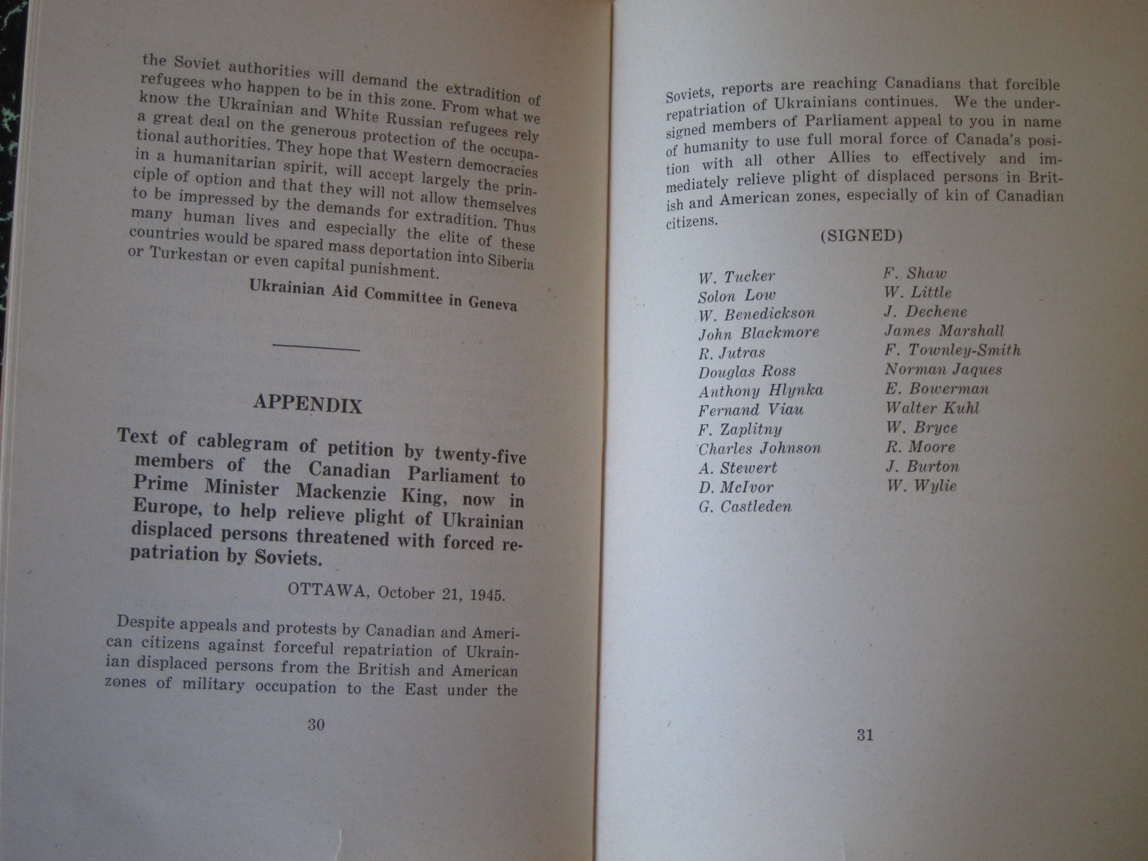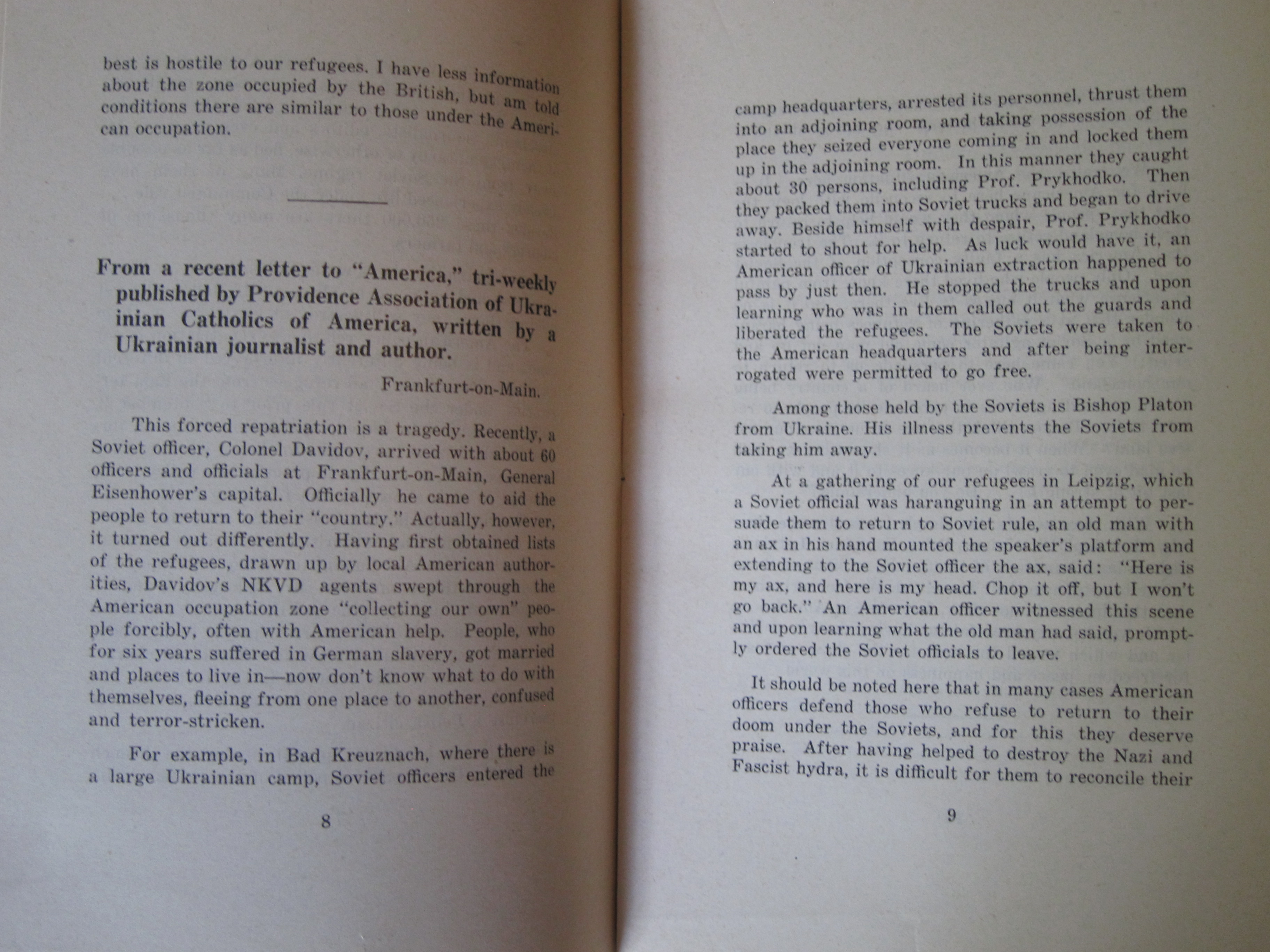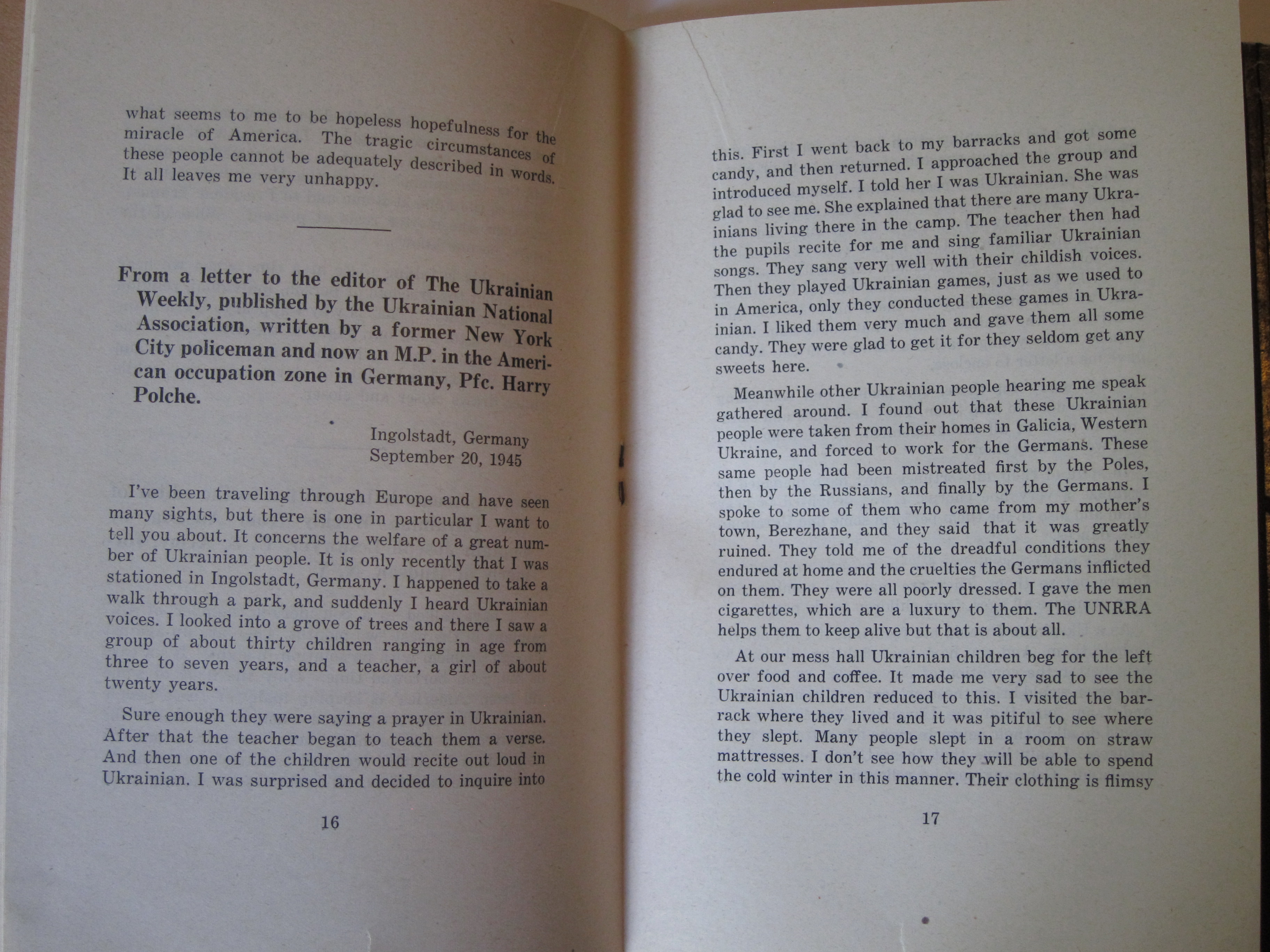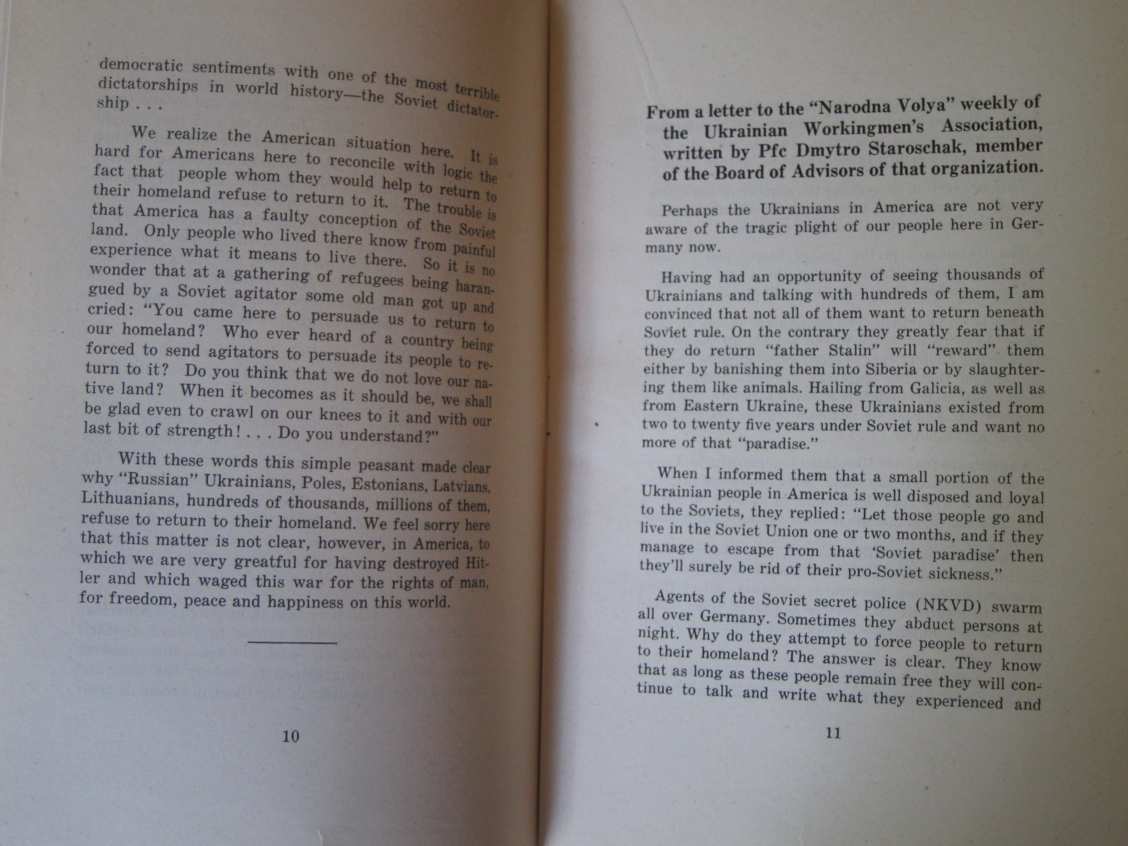 I've reprinted the full text below. (Plight of Ukrainian DPs : a few typical letters of many being received daily from Europe describing the tragic plight of Ukrainian displaced persons whom the Soviets would forcibly repatriate and doom to enslavement, persecution or death, ca. 1945/6, or 1945 according to WorldCat/OCLC.)
