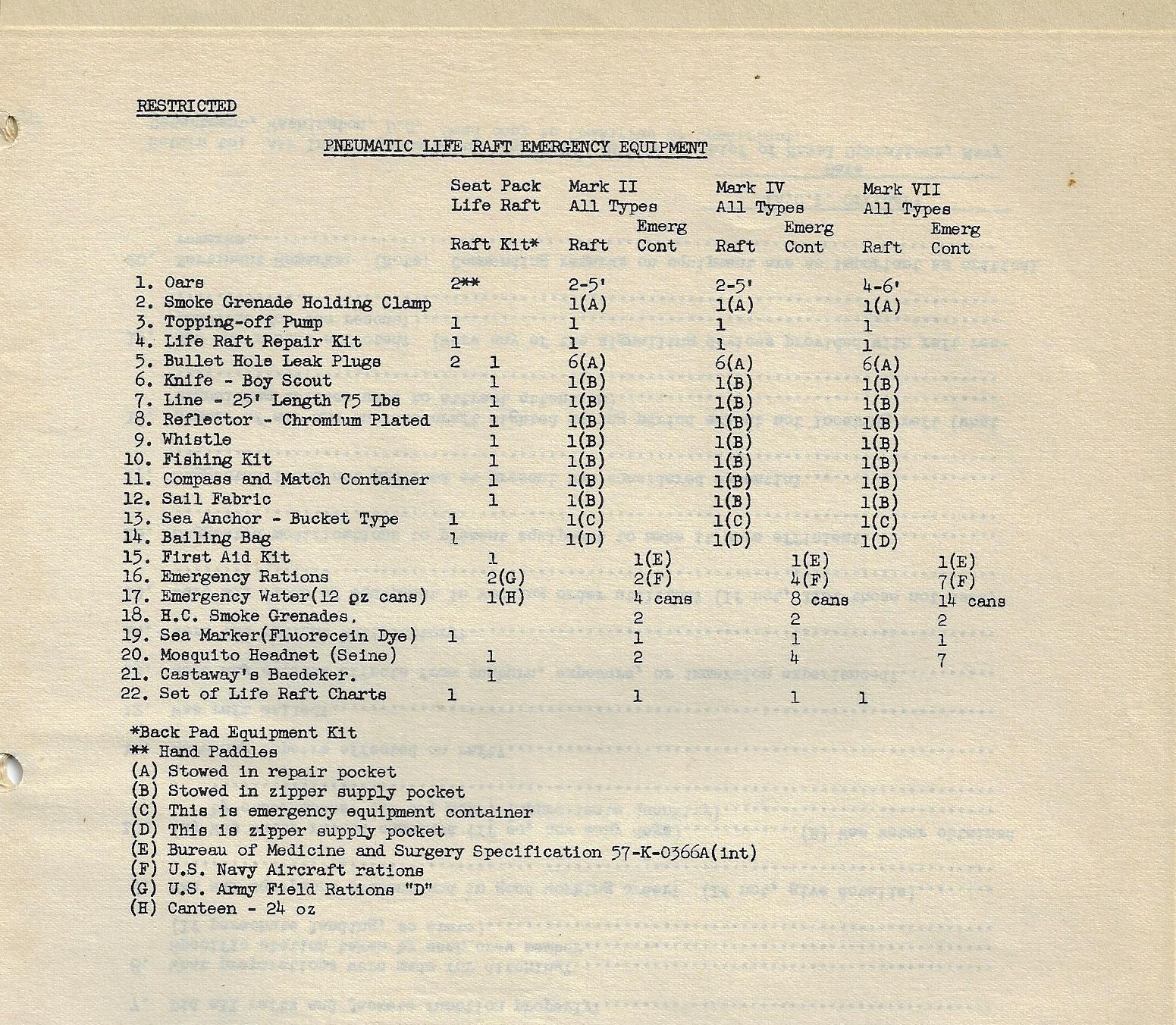 The document below addresses an odd internal issue of mine, something that I've sort of followed around in some fashion in reading about WWII in the air, and especially in the Pacific, and especially for the precautions and supplies aboard USAAF aircraft in the event of a ditching. I knew from incidental and second-hand reading exposure that these supplies changed quite a bit from 1942 to 1943, but I had no idea that there was such a debriefing schedule established for life raft usage.