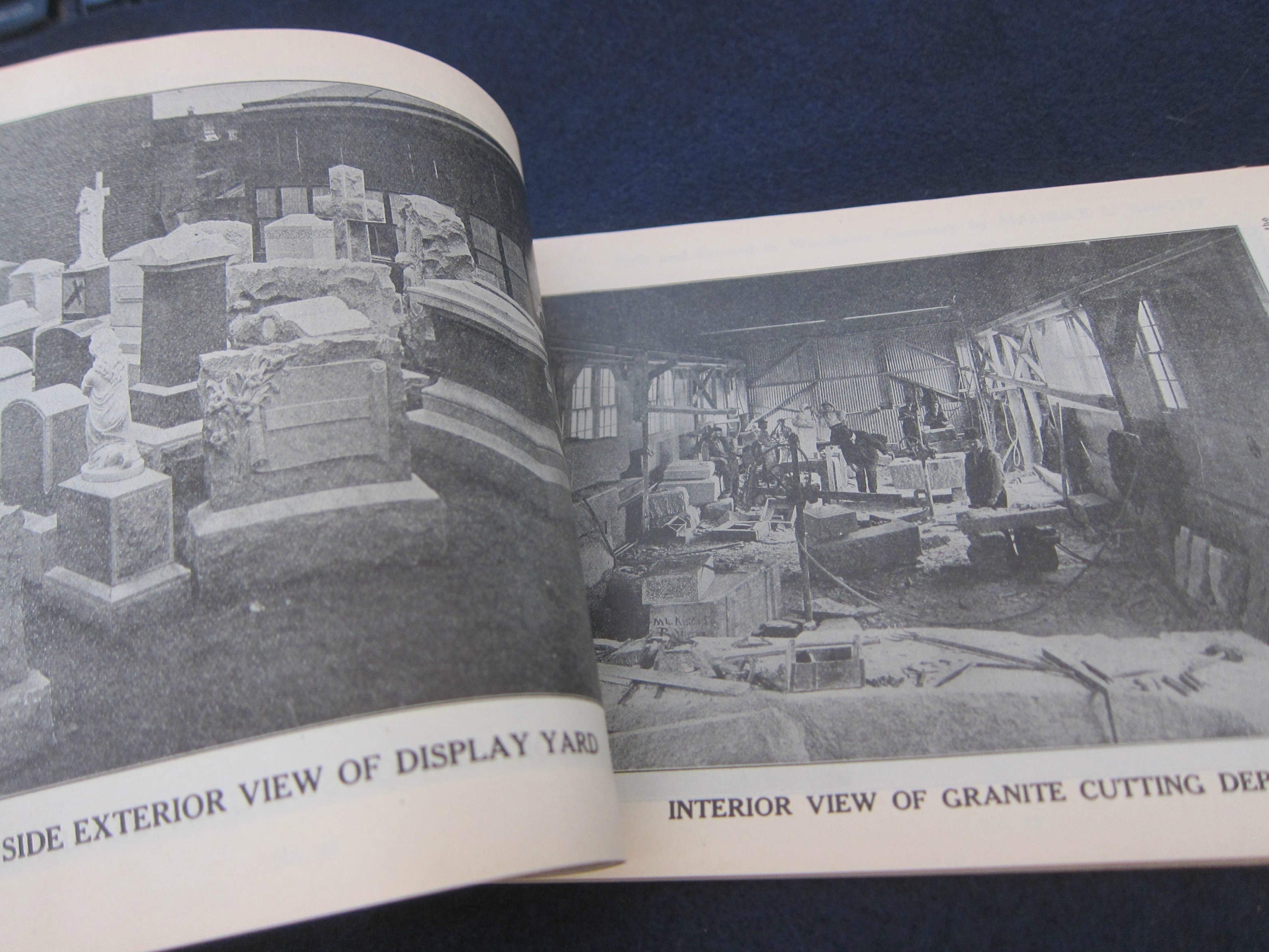 1. Consult the Master, Maurice L. Knight, for your Monument-Tomb-Vault. Office and Works, 1025 West Mulberry St., Baltimore, MD. 9x6", ca. 75pp, with 150+ illustrations of the work of the stone master. Title printed vertically though the book opens horizontally. Original wrappers. The wrappers are scuffed and bumped a bit around the edges, though the text is bright and clean. Provenance: stamped on the reverse of the title page "Gift/Mr. H.L. Mencken/March 30, 1926", being a gift to the Library of Congress, with their surplus stamp on the rear cover.