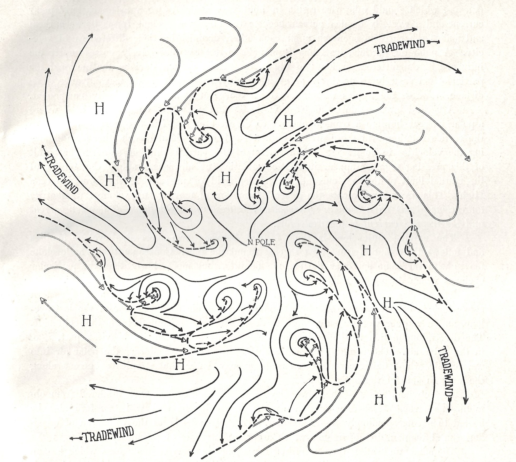 The two authors “...pictured the polar front as a string of families of cyclones, described by dashed lines linking successive warm and cold front”.--Mark Monmonier, Air Apparent: How Meteorologists Learned to Map, Predict, and Dramatize Weather, pg 64, with several reproductions of some of the lovely diagrams.