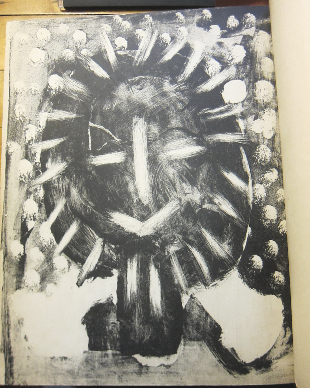 With three original lithographs. Well, TWO original lithographs, the first being the two-part cover of the original soft-cover edition called 'Claude et Paloma' (created in April 1950 and intended to illustrate the front and back wrappers) along with the spine—this copy of the book has the two separated (with no spine) and bound in at the front and rear of the book, and the other is a frontispiece. The frontis is 'Fleurs dans un verre N° 6' was created in 1947. (I have now seen several examples of these lithographs offered for sale as individuals without the spine decoration.)
