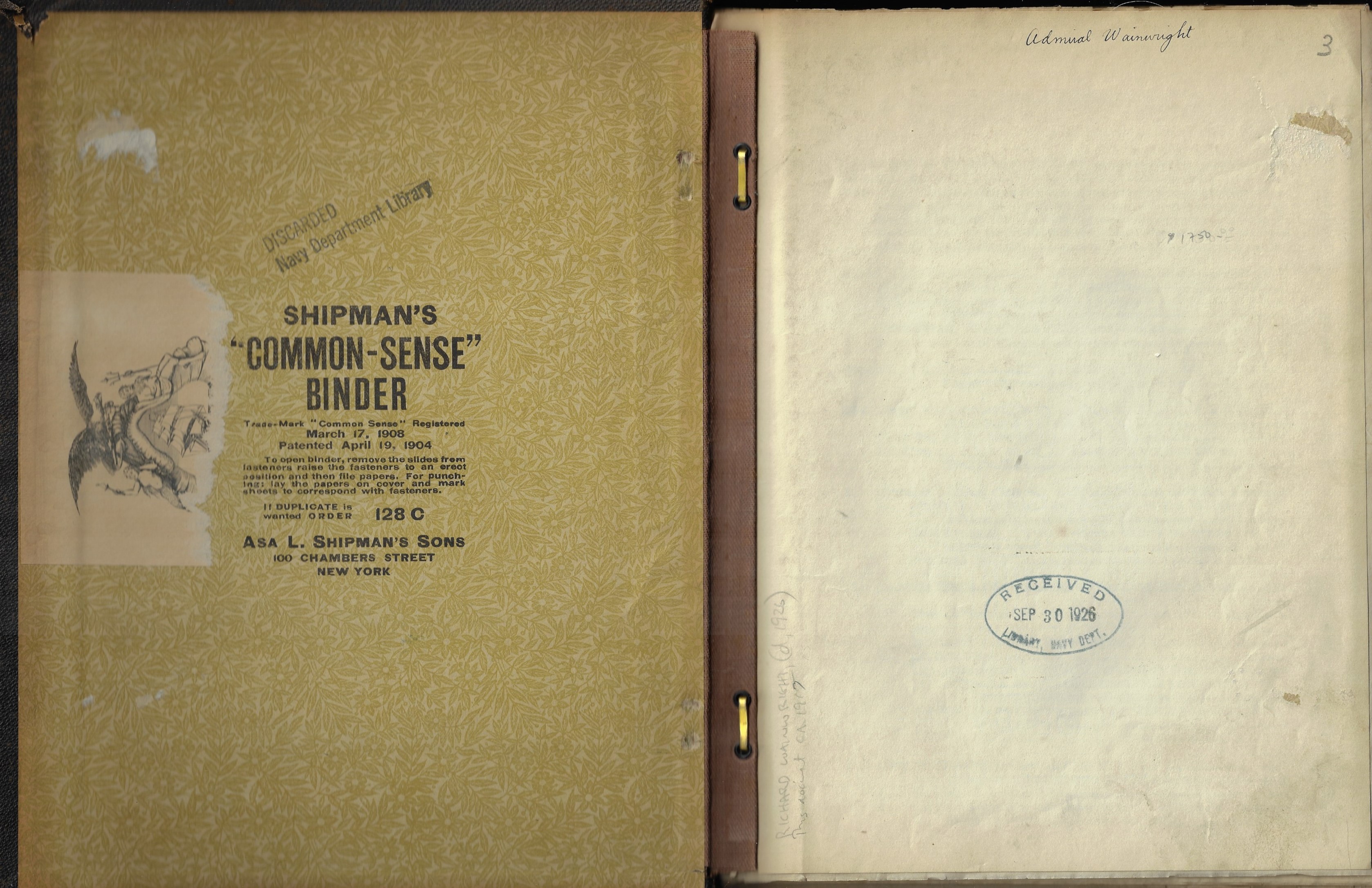 Provenance: Admiral Richard Wainwright, then to the Navy Department library (received 30 Sept 1926), then to the Library of Congress