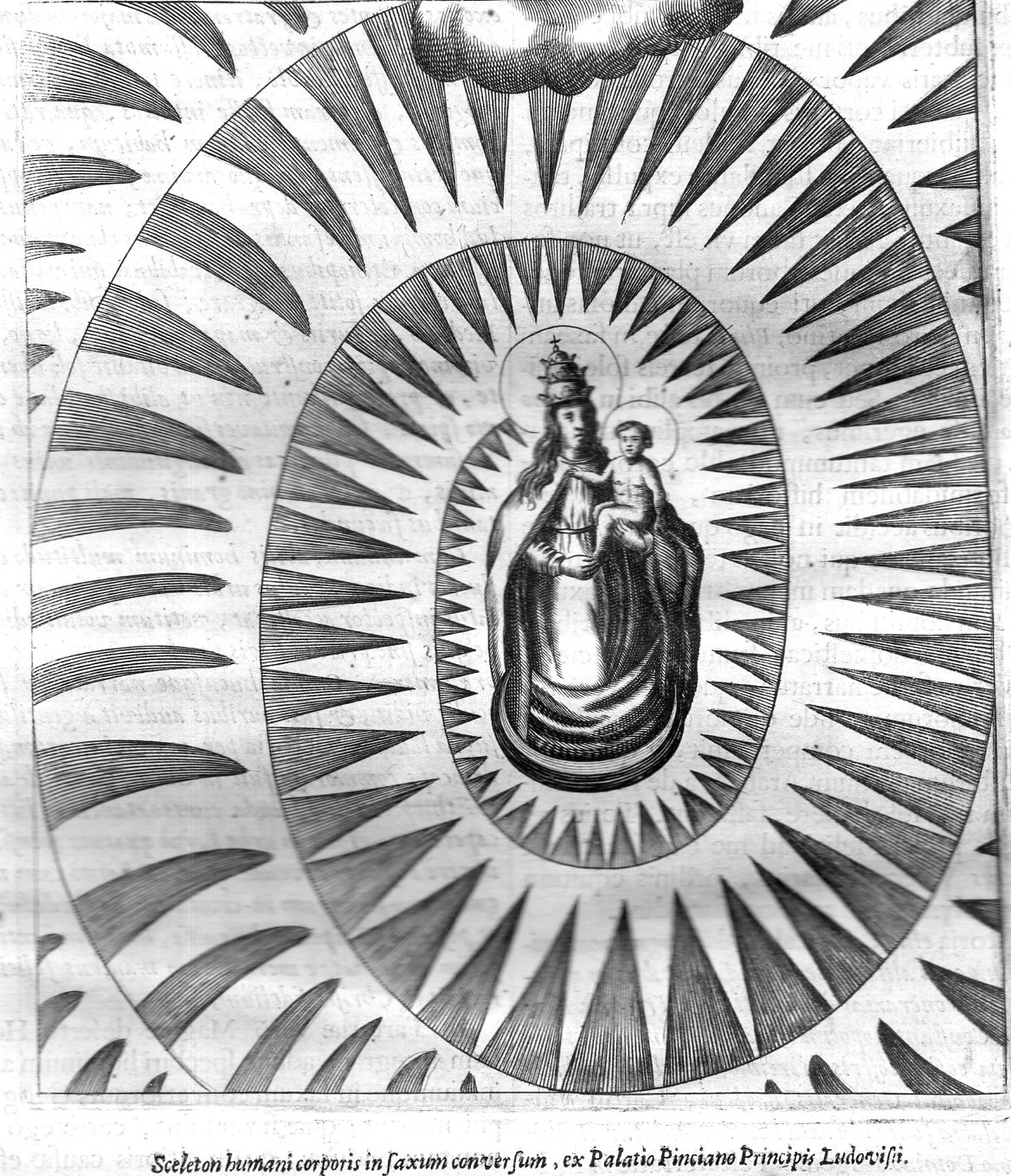 Continuing this theme, if you look in the right upper corner of the engraving there is another interesting symbol--a hand issuing from a cloud with a book, sourounded by three fleur de lis. This is in obvious reference to the balloon statement, the hand of god issuing a book, or knowledge, to the recipient (which would be the reader or Lull); the fleur de lis, a French lily, was often used in Renaissance and Baroque imaging as a representation of the holy trinity, and of purity and chastity, spirituality. Or perhaps it was just a flower.