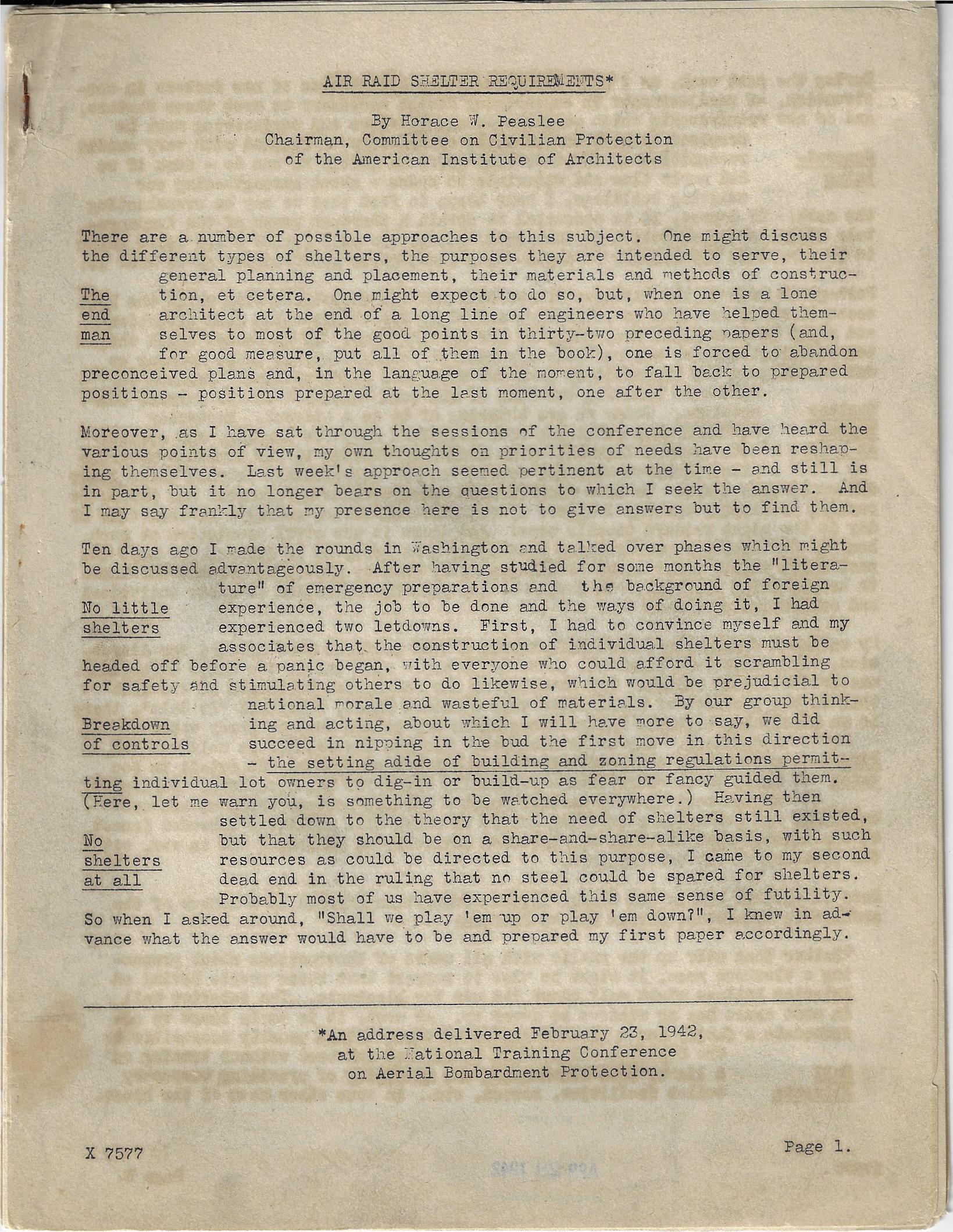 Kiesler, Frederick. Architecture as Biotechnique. Offprint: Architectural Record, 1940. 12x9 inches, pp 60-75. Original printed wrappers. Nice copy. There's a little bit of dust soiling around the edges of the pamphlet, and a ex-ownership mark on the back cover' there's also a 1/4-inch perforated "LC" stamp at the very bottom of the front cover, as this was part of the Library of Congress' Pamphlet Collection and a Copyright Office copy of the pamphlet. Rare. SOLD