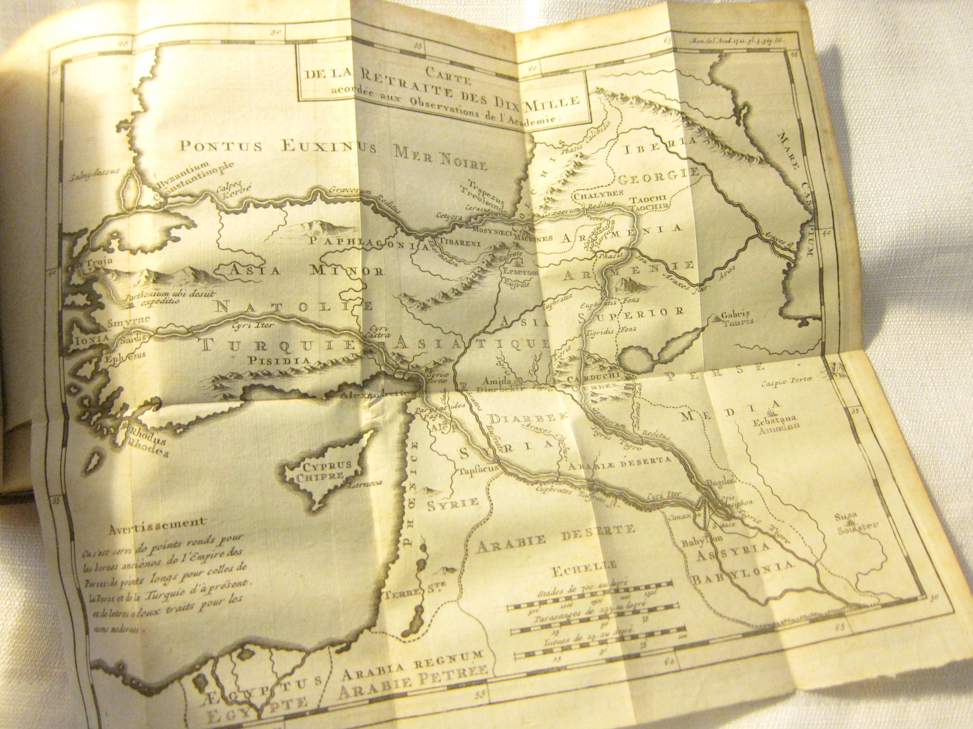 Guillaume DeLisle, “Determination Geographique de la Situation & de l'Etendue des Pays traverses par le jeune Cyrus dans son expedition contre son frere...et par les dix mille Grecs...(with the map mentioned above, showing the area trod by the 10,000), pp 73-89.
