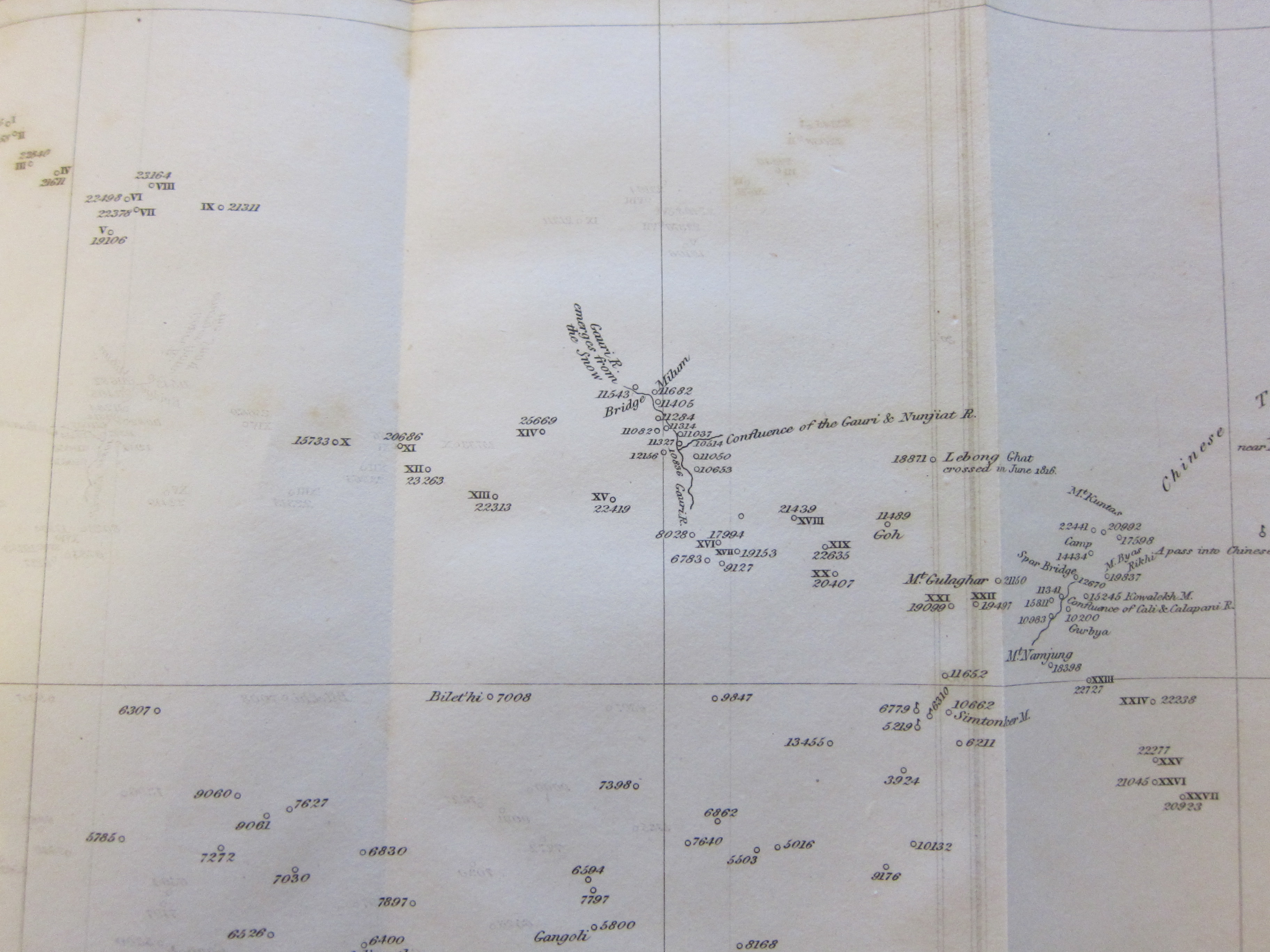 "H.T. Colebrooke. "On the Height of the Dhawalagiri, the White Mountain of the Himalaya", pp 240-9, with an accompanying map, (9x7", "Reduced Copy of a Part of Captain B. Blake's Survey of the Province of Goorukpoot during 1812, 13, 14, & 1815 including the Positiion of the Mountain Dhawalagiri and four other very remarkable peaks of the Himalaya Range" , in The Quarterly Journal of Science, Literature, and the Arts, edited at the Royal Institution of Great Britain, published by John Murray for the Royal Institution, London, 1821 volume XI, pp.240-9, contained in the volume of 431pp, with 6 plates, including three folding (including two maps). Bound in half-calf with calf tips, and marbled boards. $250 Condition: nice copy, though the spine is somewhat scuffed. Good copy.