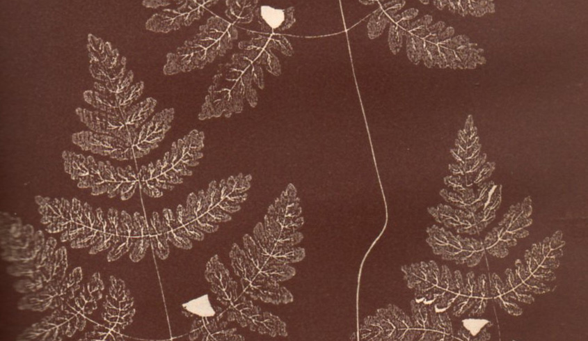 "...facsimile of a photogenic drawing of ferns (done on the block) as a plate [to illustrate an article serialized by Dr. Golding Bird "A Treatise on Photogenic Drawing" and reprinted in the Magazine of Natural History, p. 234-44]...printed in rust to imitate the photogenic drawing... The facsimile of the photogenic drawing done directly from an exposure on the block is the first photographic image published. The finished example is printed directly from the block in a reddish brown to match the color of Talbot's first salt print photograms."--Hanson Collection catalog, p. 6