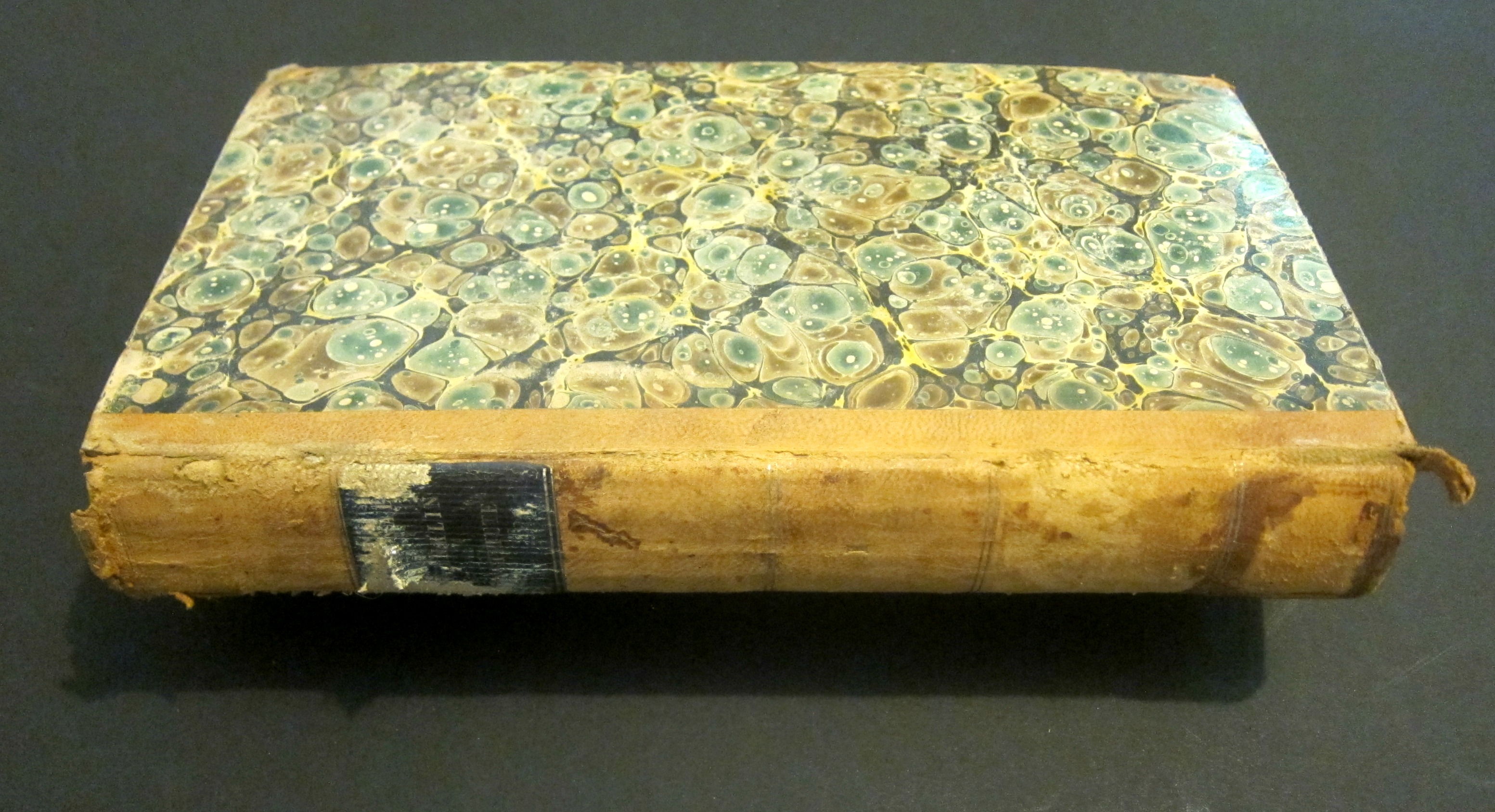 Condition: calf-backed marbled boards. The calf is pretty scruffy and rubbed, and the front joint is half cracked; also the hinges are both starting; lastly this is an ex-library copy with stamps on the title page. All that said, the text is crisp and clean. Overall, just a GOOD copy. $150