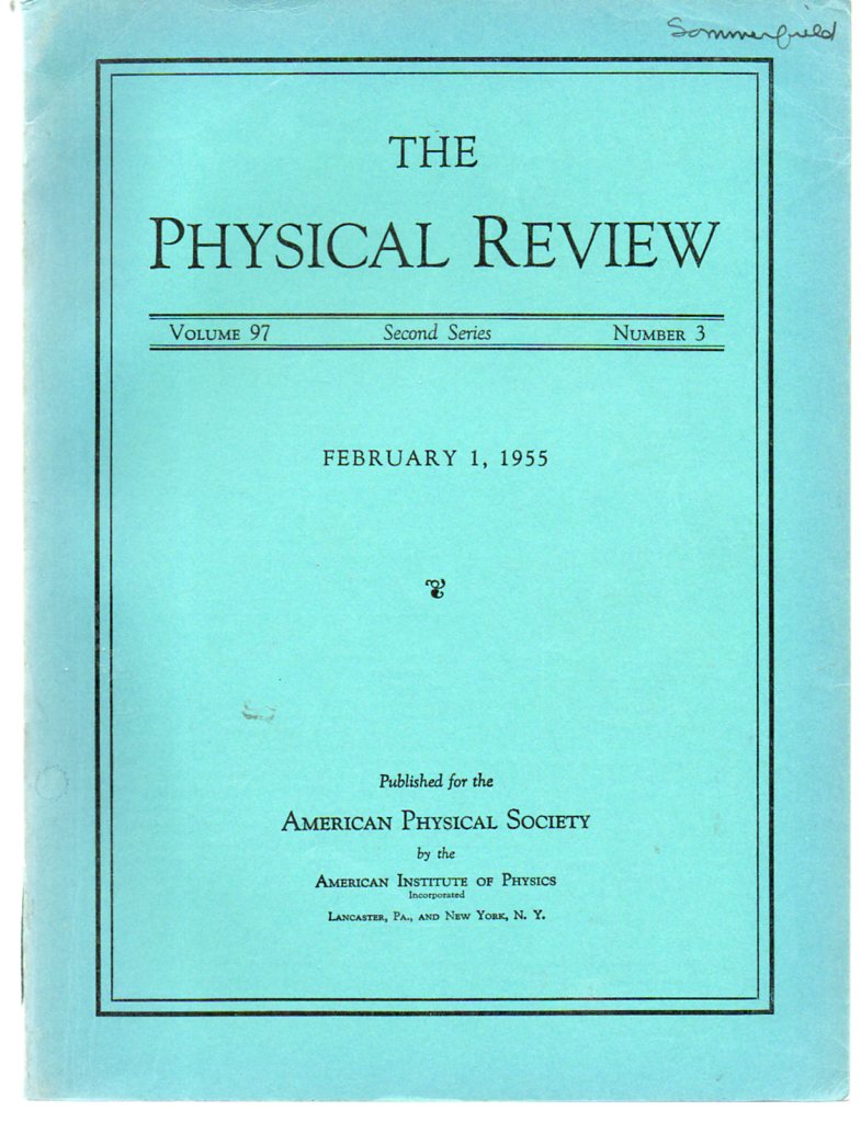 Lee and Yang, "Question of Parity Conservation in Weak Interactions". American Physical Society, 1956. Physical Review 104 (1) October 1, 1956 Original printed wrappers. Fine condition. We offer the entire weekly issue in its (SCARCE) original wrappers. $1400 (Original owner's name in ink in top margin of front wrapper.)