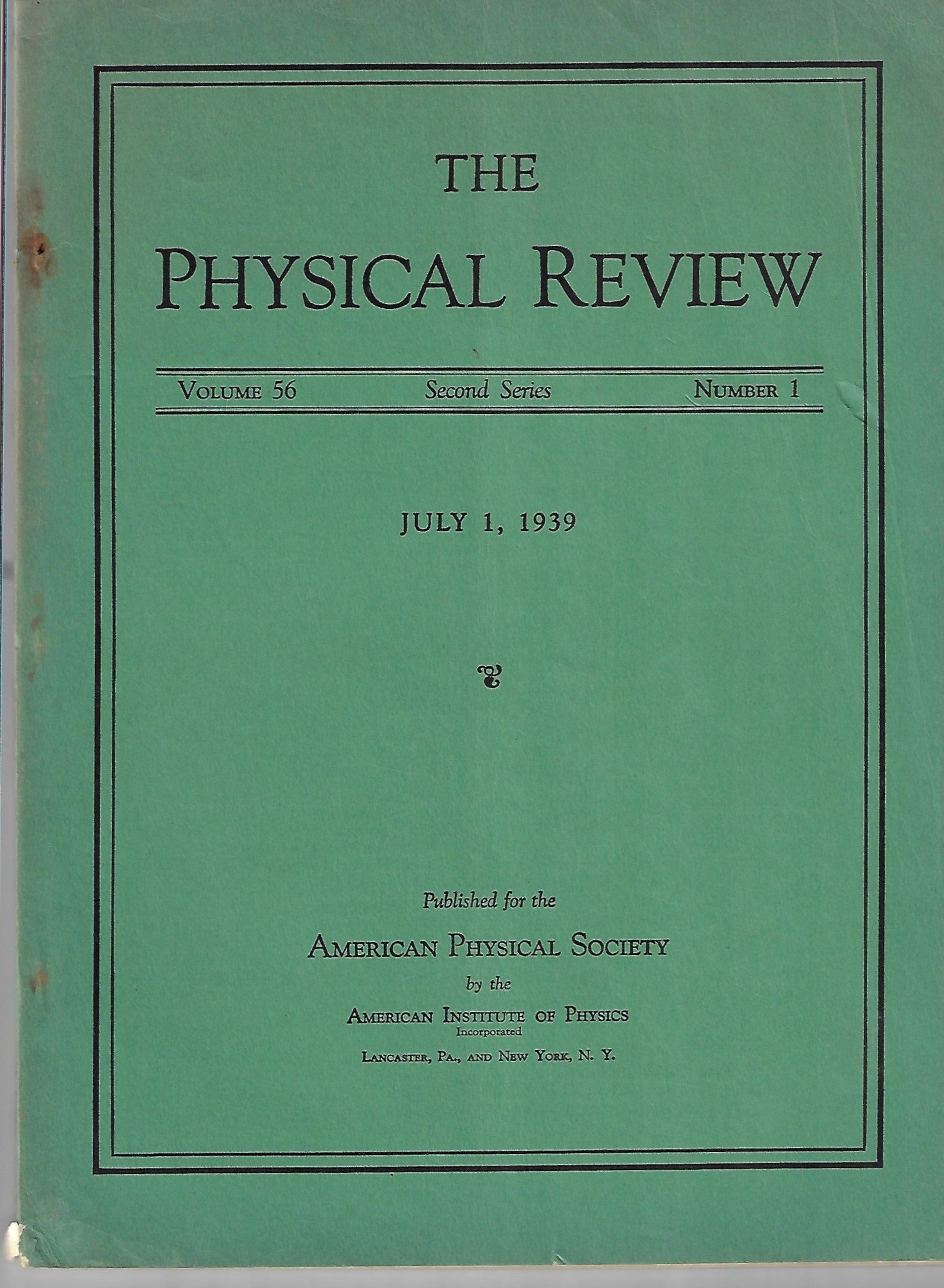 M.G. Lattes, G. P. S. Occhailini, and C. F. Powell , “Observations on the tracks of slow mesons in photographic emulsions”, in Nature, 160 No. 4066 pp. 453–456, October 4, 1947, with photos, tables, and graphs. Original wrappers. Almost invisible professional repair to front wrapper, otherwise fine. Confirmation of the discovery of the Pion. $250