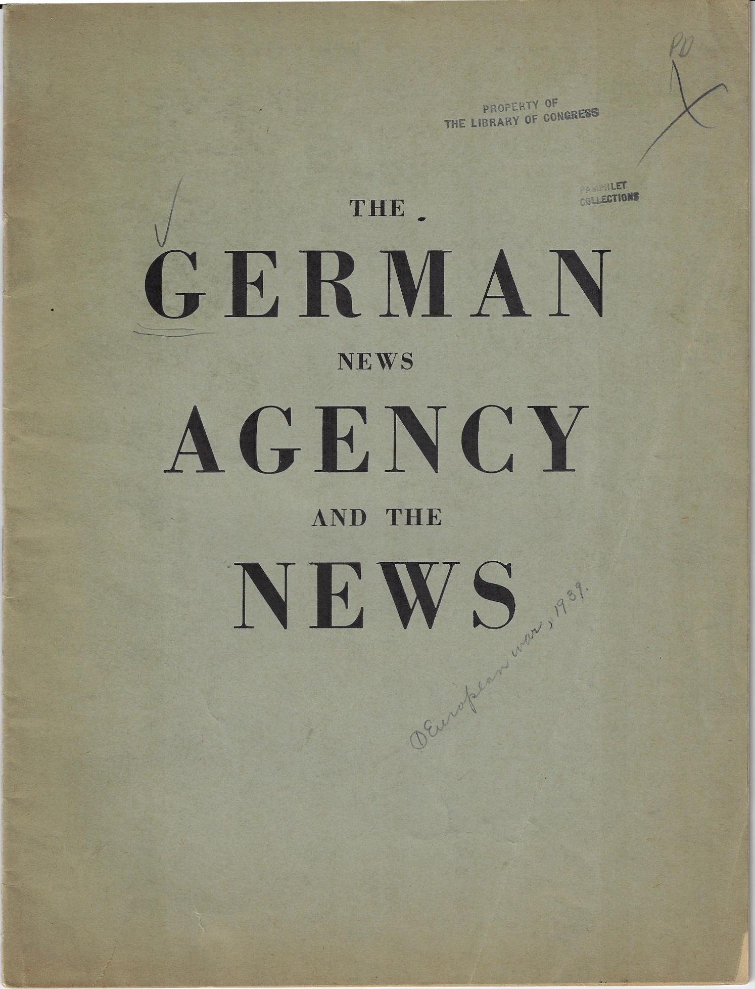 Only 5 copies located in WorldCat (all in the U.S.) There is also an OSS borrowing slip (with two entries) in the rear pocket of the pamphlet.