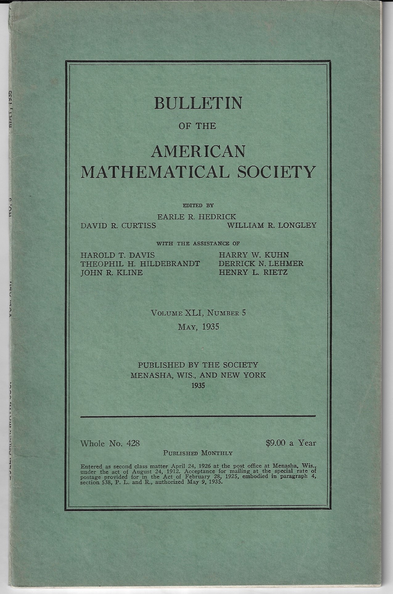 American Physical Society, Lancaster Pa., January-December 1939. Two volumes: x, 1294pp & x,1300pp. The two volumes, complete. Finely and sturdily rebound in cloth and marbled boards. Very stout, readable volumes. Fine condition. Few scant ownership stamps on some of the individual issues' first page. $2250