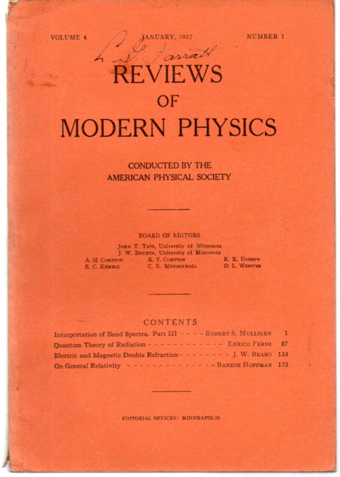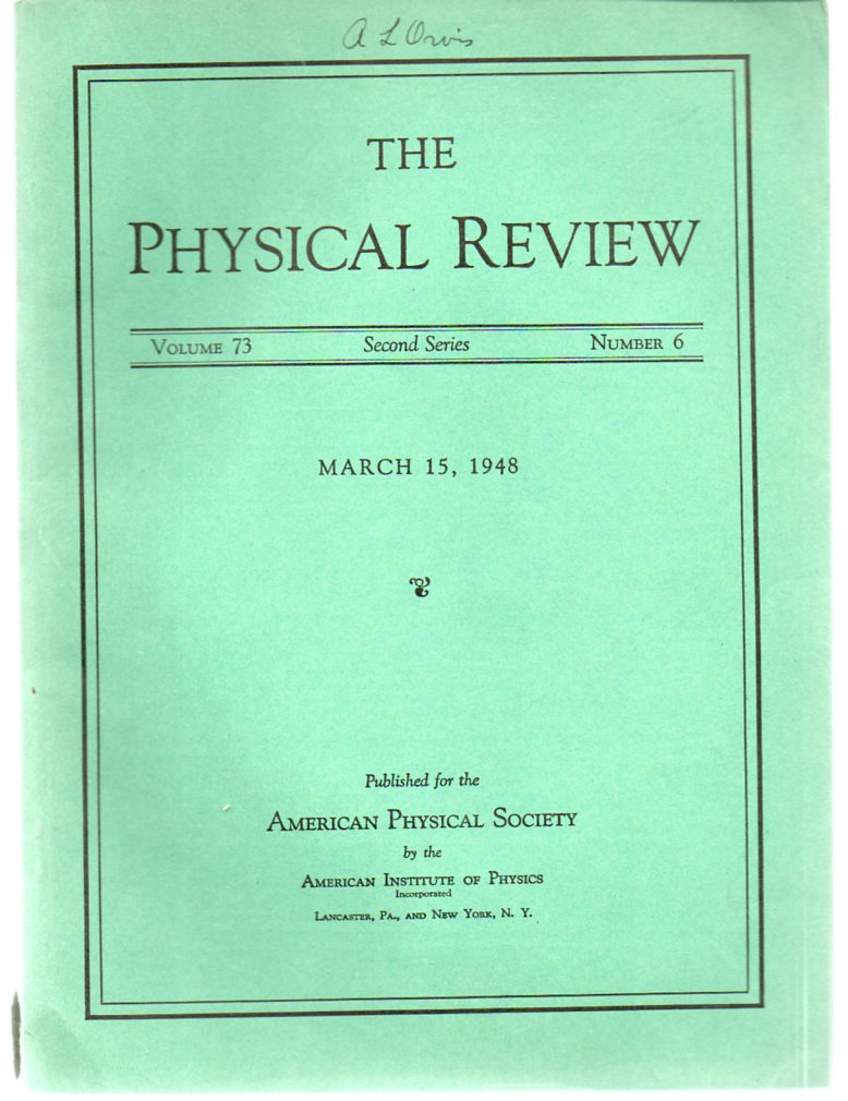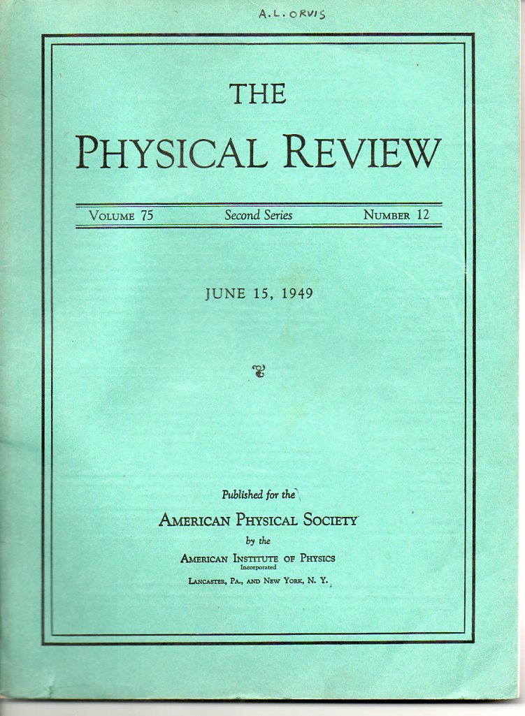 Schwinger, Julian. On the Classical Radiation of Accelerated Atoms. Lancaster: American Physical Society, 1949. 1st edition. The Physical Review, 2nd series 75/12 Pp 1912-1926 8vo. Original printed wrappers. Very good condition. $350