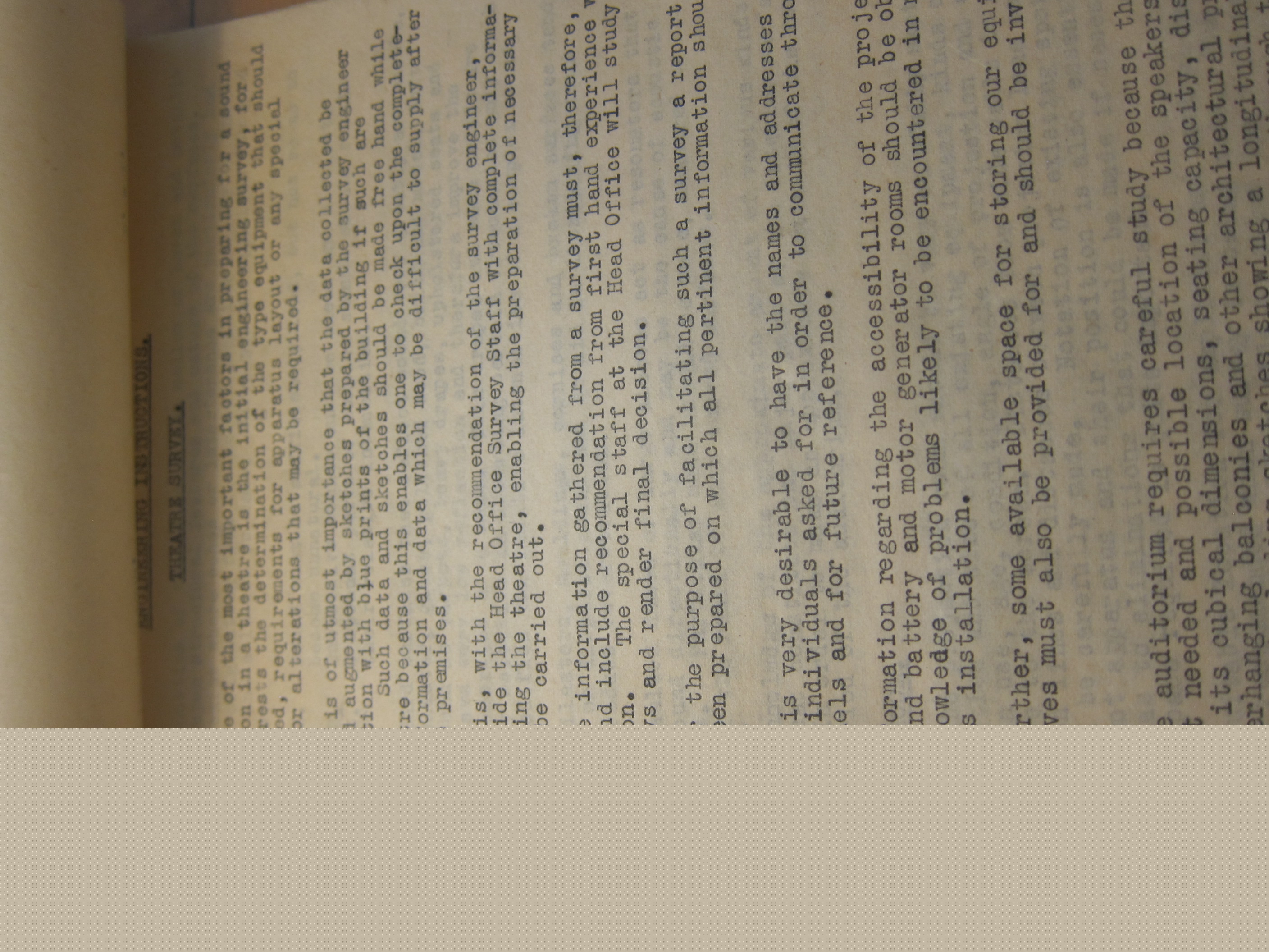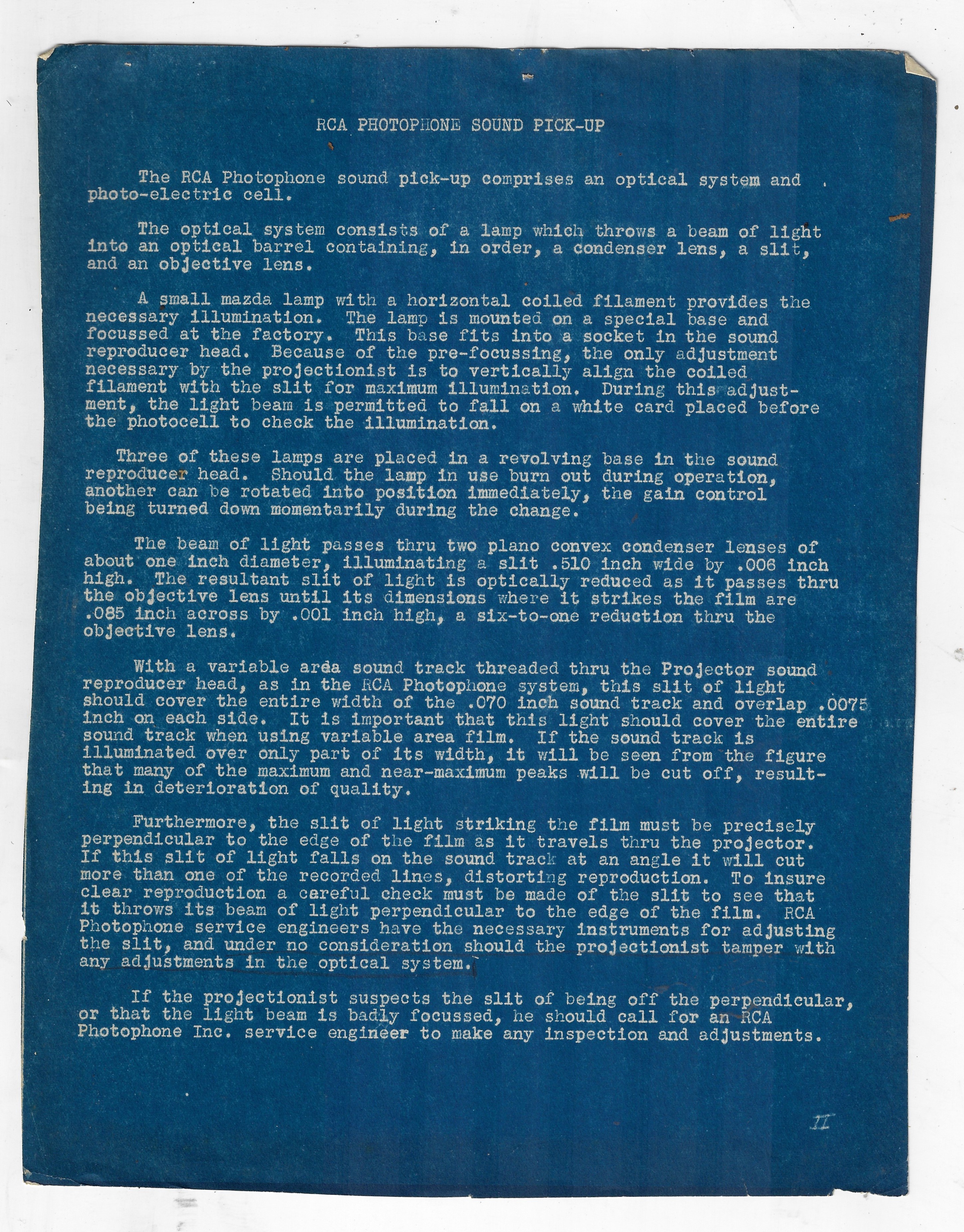 Theatre Survey Instructions. "Property of RCA PHOTOPHONE, INC. Its use is limited exclusively to authorized employees of RCA PHOTOPHONE, INC., and authorized employees of its associated companies. Very good condition. $3500 (1/3 to charity)