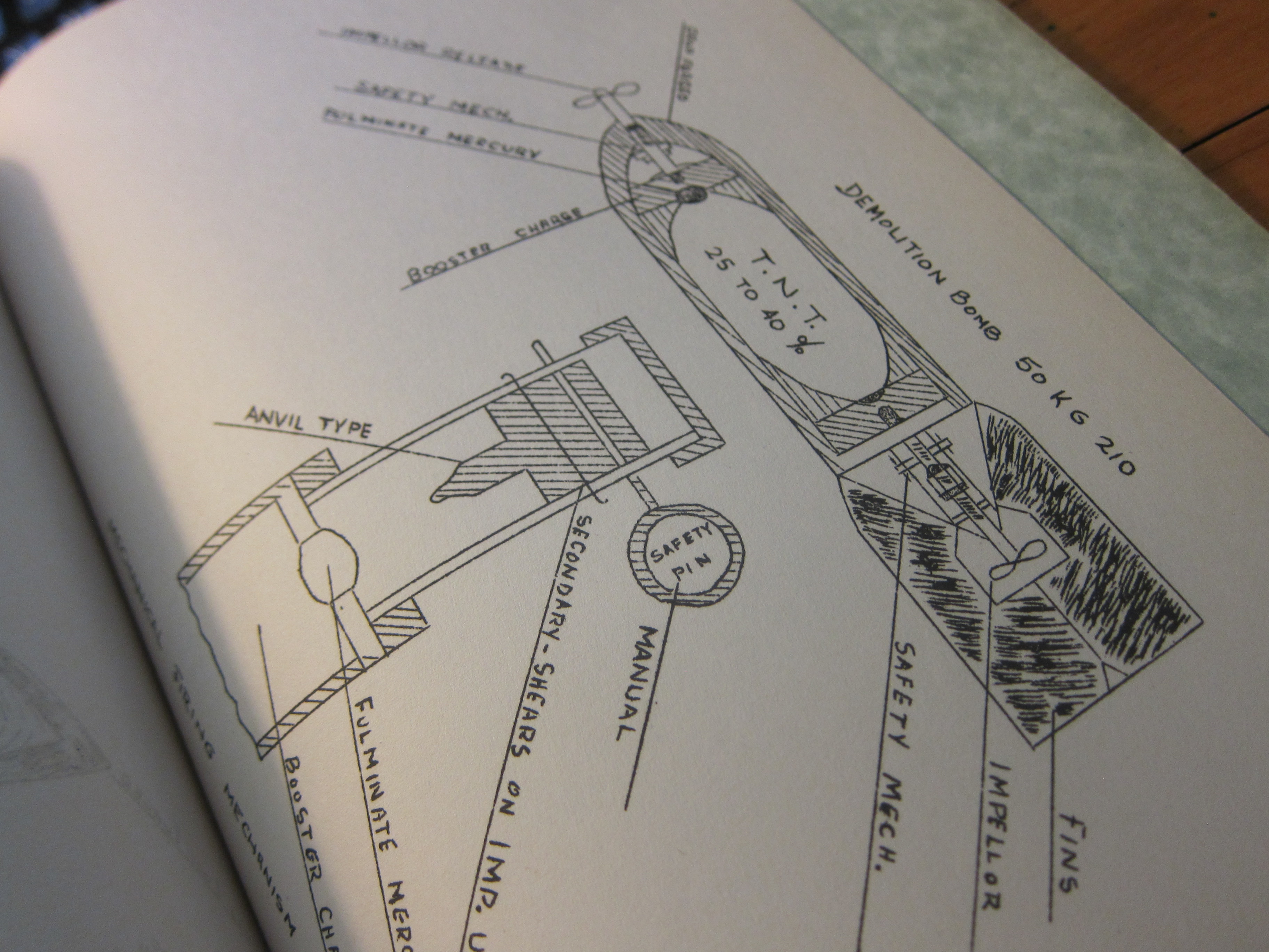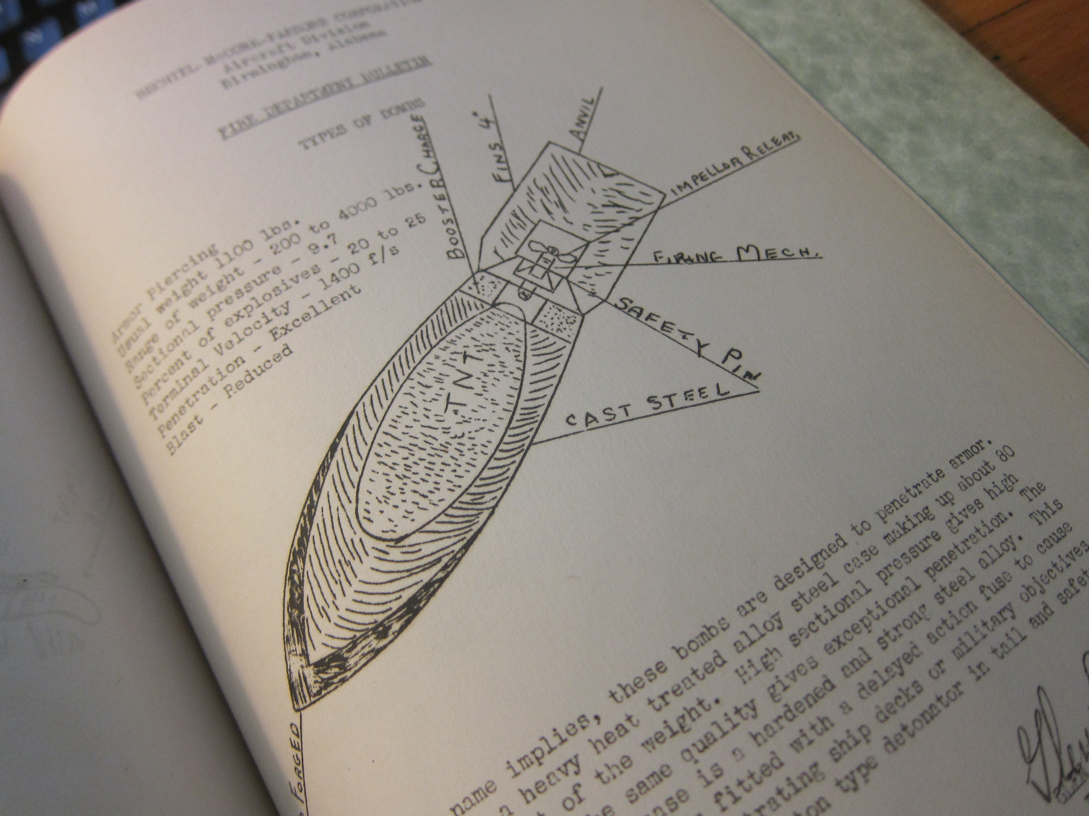 U.S. Depth Bombs (depth chargers), “Confidential”, 27 July 1944. 1 sheet. Table of the bomb type, weight of charge, total weight, nose, pistol, lethal radius, and impact-spacing (day and night).