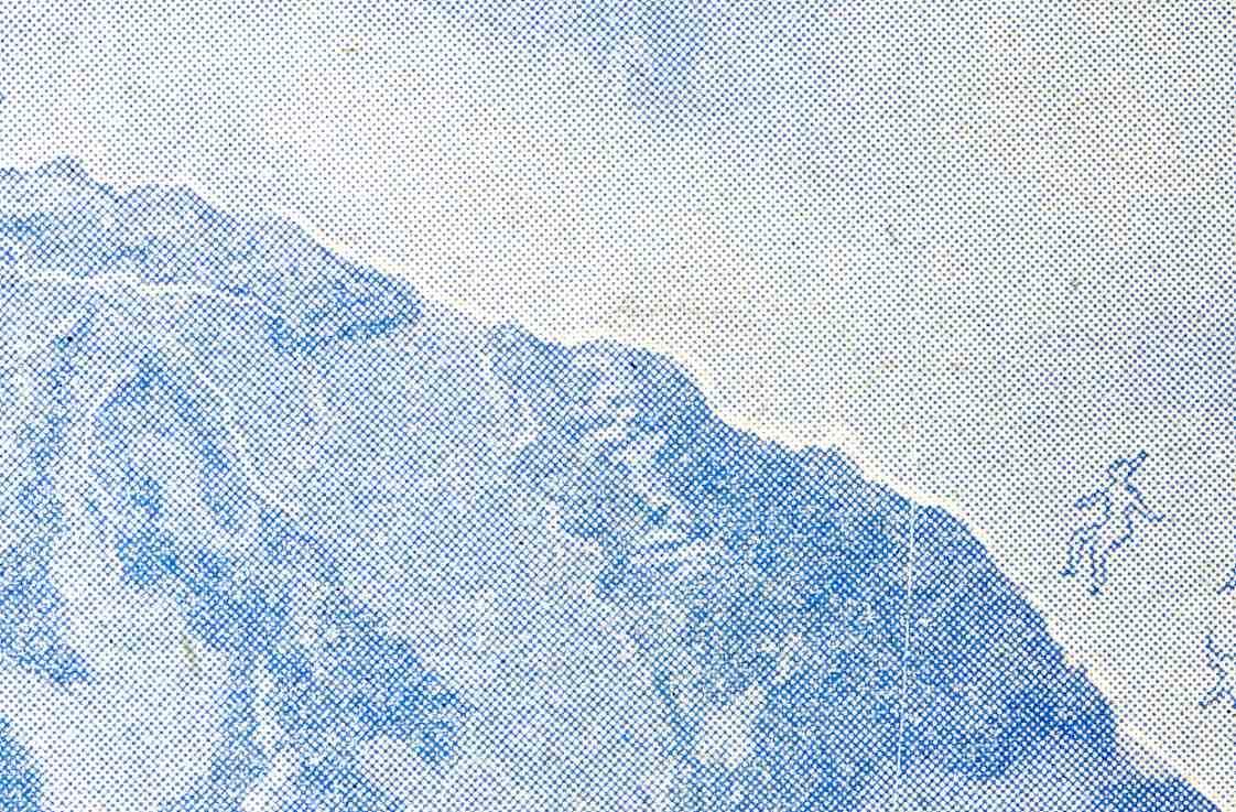 The other interesting bit on the cover is the representation of the giant mountains of Europe, which erupt above the earth's horizon. I figure that for these bumps to be so prominent that the mountains needed to be at least a hundred mile high.