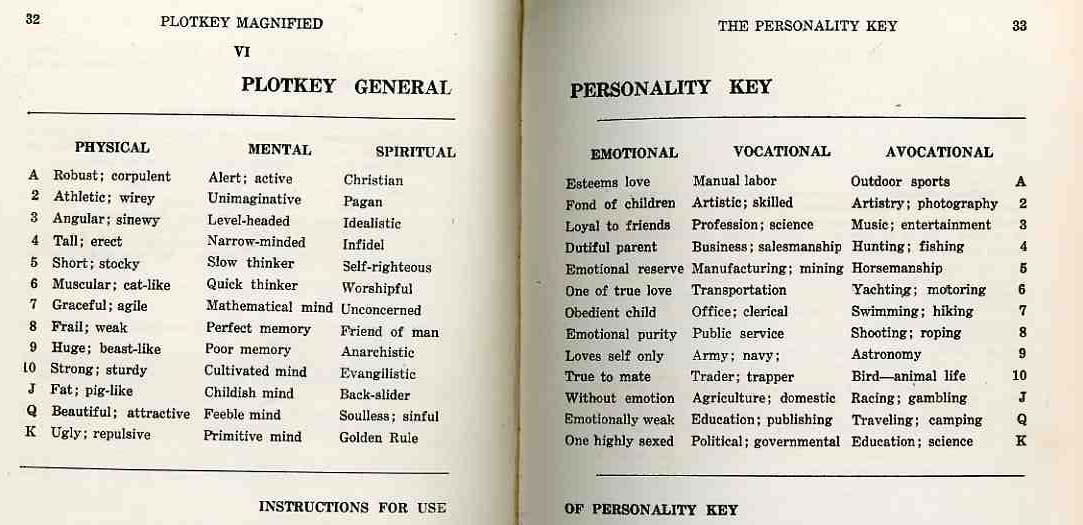 What Mr. Curtis was trying to do here with this publication was (a) make a little money and (b) selling a manual of some calculated "ideas" for story and character development to people writing detective fiction for detective novels. Nothing really works here--the author shouldn't have written it because he couldn't write, and certainly couldn't teach all of the stuff about writing that he couldn't have known;and the readers shouldn't have bought it because if they couldn't write before reading the book they doubley-couldn't write after using it. And I do mean "using" it rather than "reading" it. Incredibly, the book is set up to have its ideas dismembered and set up in the fashion of a card deck, the reader dealing themselves out pieces of characters and scenes and locales, with Mr. Curtis offering more than two dozen (!) different types of physical, mental, spiritual, emotional, vocational and avocation descriptions encompassing the totality of human nature. Even though these descriptions of the human condition are minimal, liminal and sturdily stupid, they are funny in an outsider, disturbed vein of insight. The 'physical personality" aspects like athletic/wirey; fat/pig-like(?) rub up hard against things like the removed "spiritual" personality traits, which include "christian, pagan, idealistic, infidel, unconcerned, back-slider, soulless-sinful". Throw in the mental, and emotional stuff plus the interest and jobs sections and you can concoct some spectacular Frankensteinian-monster personality assignments: for example, at random, you can develop a character for your detective story who is fat and pig like with a poor memory, a back-slider who loves themselves only, is a trapper, and is interested in "entertainment". Wow. These ingredients can get mixed and coddled into a witches brew of old tripe that would compose an unlikely and heinous small town population that should probably be buried rather than read about--remember, you're supposed to use this cookbook as The Guide to Creativity for the short story you're trying to sell to "Muscle Culture".