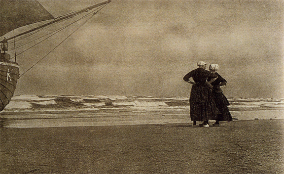 The image above at left is a magnification of an engraving from 1760;above right is a half-tone image of a 1905 Alfred Stieglitz photo; below left is a magnified sample of what the Stieglitz was composed of; and bottom right finds an illustration of the different combinations in size and color that would effect the composed final image in the final column.