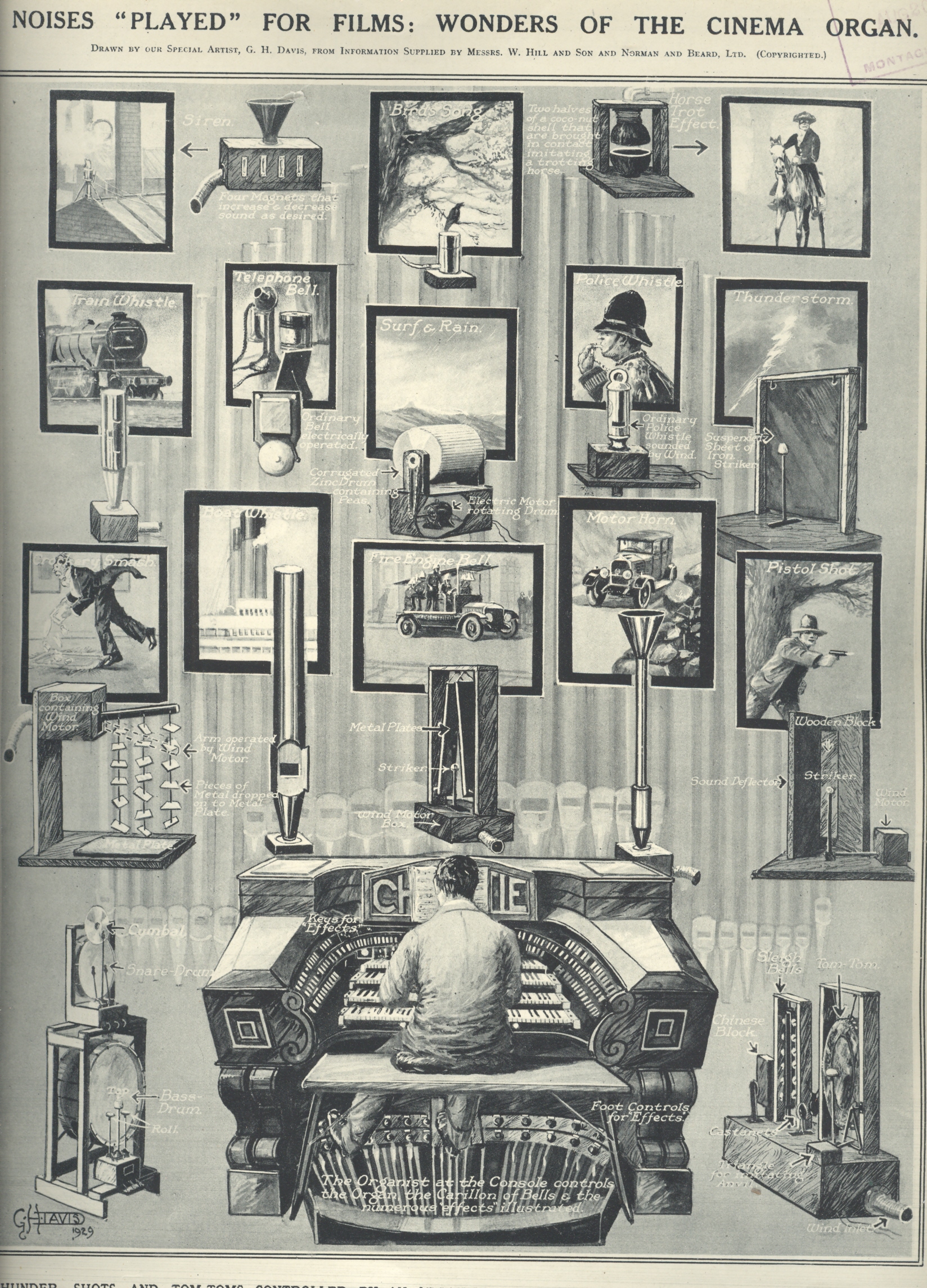 Illustrated London News for 10 August 1929, and depicting a device that would provide "sound effects" for silent motion pictures.