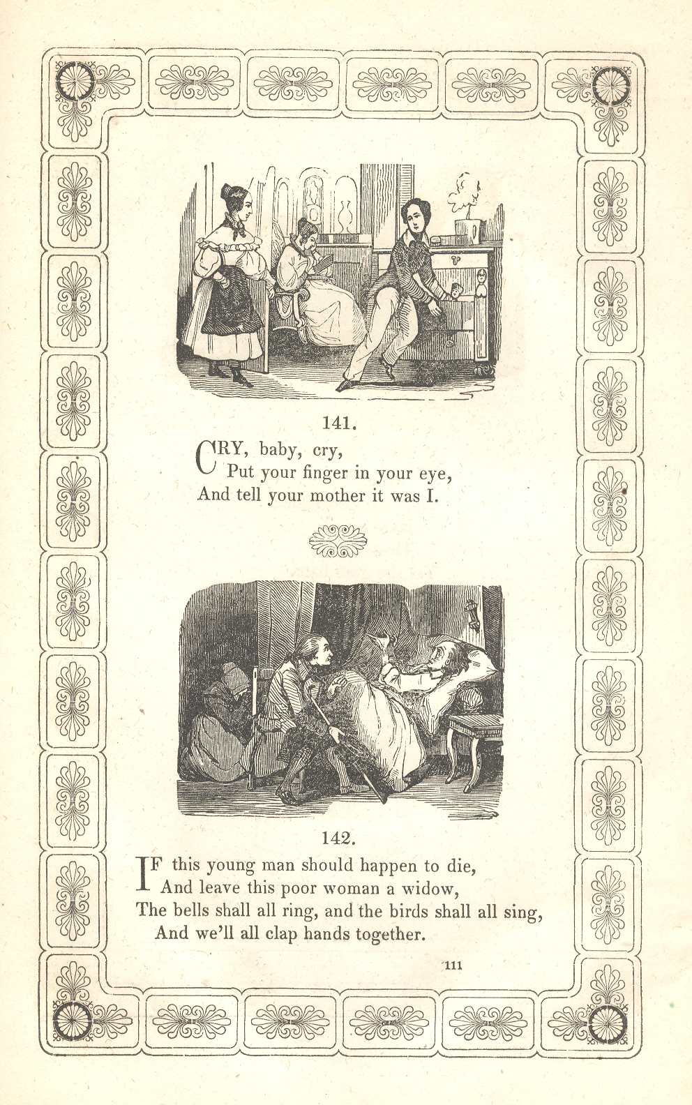 There is an example however in Thomas Truman's The Nurse's Rhyme Book, a New Collection of Nursery Rhymes, published in Philadelphia in 1847. The book is filled with unusual illustrations and fantastic ornamental borders, all used in support of some odd, scary, mean and occasionally pretty mid-century posies meant as night-time entertainment for the young ones. Our prize is found on the very last page, the final slug of an illustration to a more-finely illustrated book: a coy, small boy, holding an example of his art, seemingly drawn on a framed slate. He looks happy, pleased, proud to me--on the one hand he is interested in sharing his achievement and on the other is really too shy to share, an emotion I've seen from time to time with my girls. As a matter of semi-fact, this is a rare emotion to see displayed in art, the too-shy-to-share routine saved more for fluttery self-conscious Victorian grown-ups more so than for children..