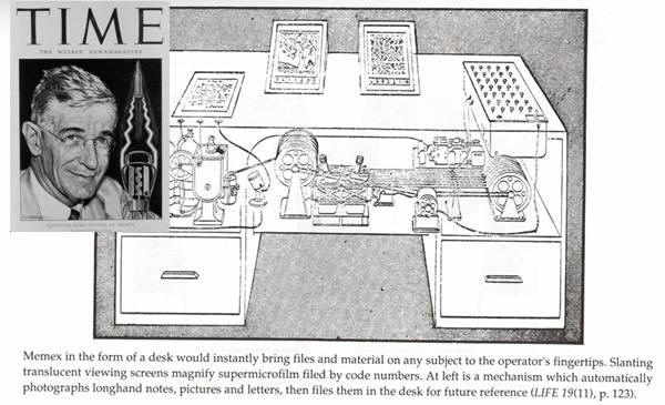 the concept of hypertext: the MEMEX machine of the under-remembered Vannevar Bush.