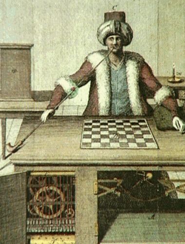 The machine was actually in its 65th year or so on tour, starting out life with Baron Kempelen, the original inventor of the device in 1769. Maelzel was a shuckster who happened to be one of the machine’s final owners--touring with it in America in the 1830’s--before the thing burned to bits in 1854.