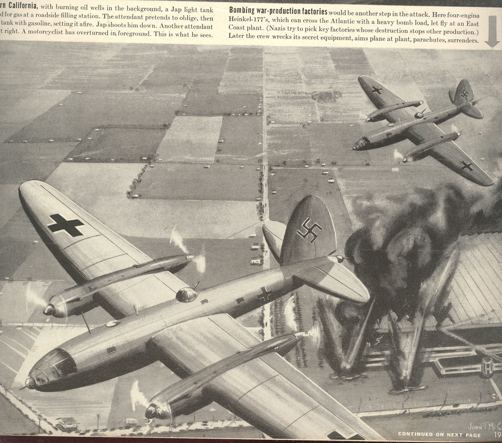 These Heinkel-177’s are bombing an unnamed East Coast war production