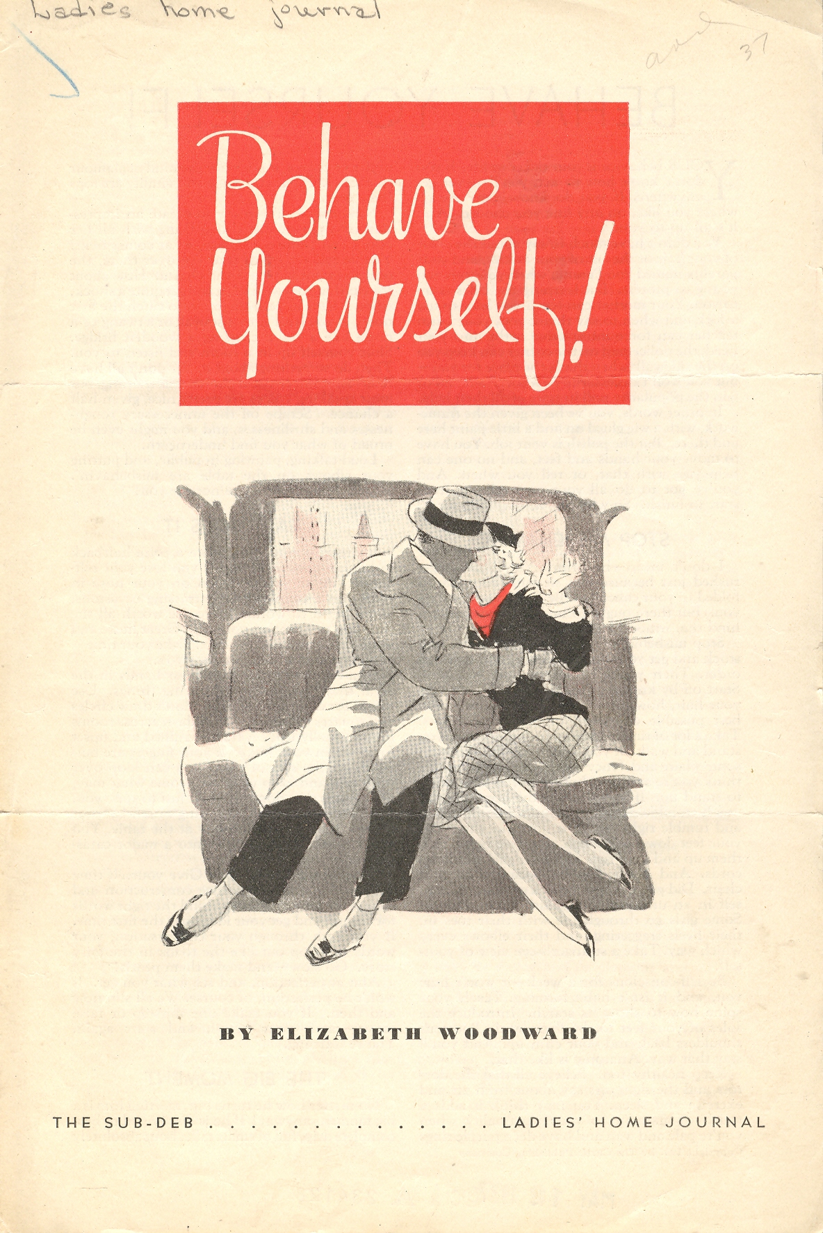 Probably Elizabeth Woodward Magdelain (1906-1980), writer of the "Sub-Deb" column in the Ladies Home Journal in the 1930s and '40s. An Elizabeth Woodward married Philippe Magdelain in Philadelphia in 1939, and is likely the same woman who renewed copyrights on some Ladies Home Journal titles and died in Newtown, Connecticut.