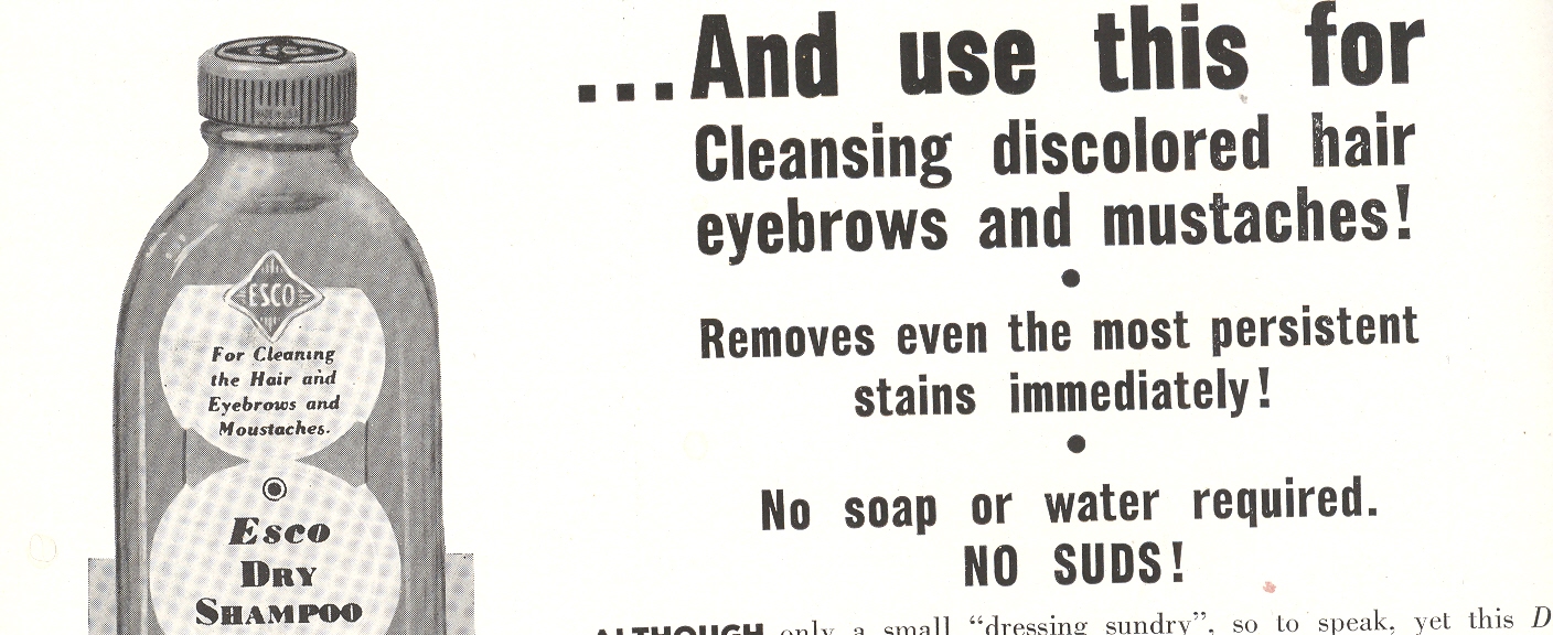 --Dry Shampoo (“For cleansing discolored hair, old-age eyebrows and mustaches”)
